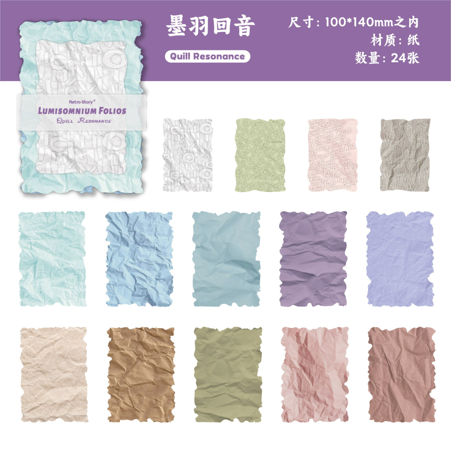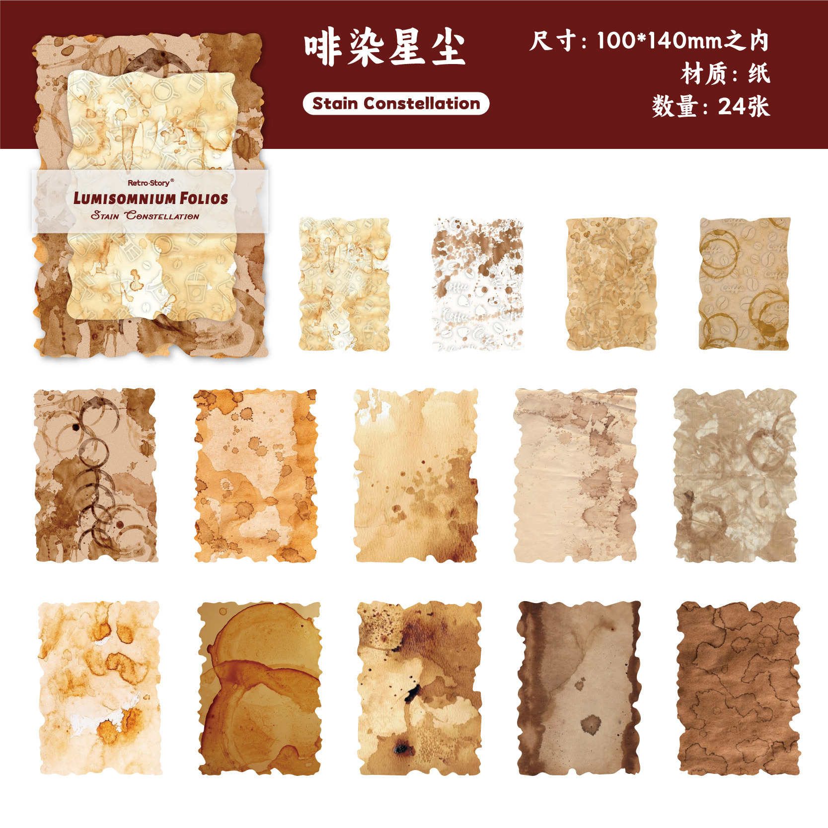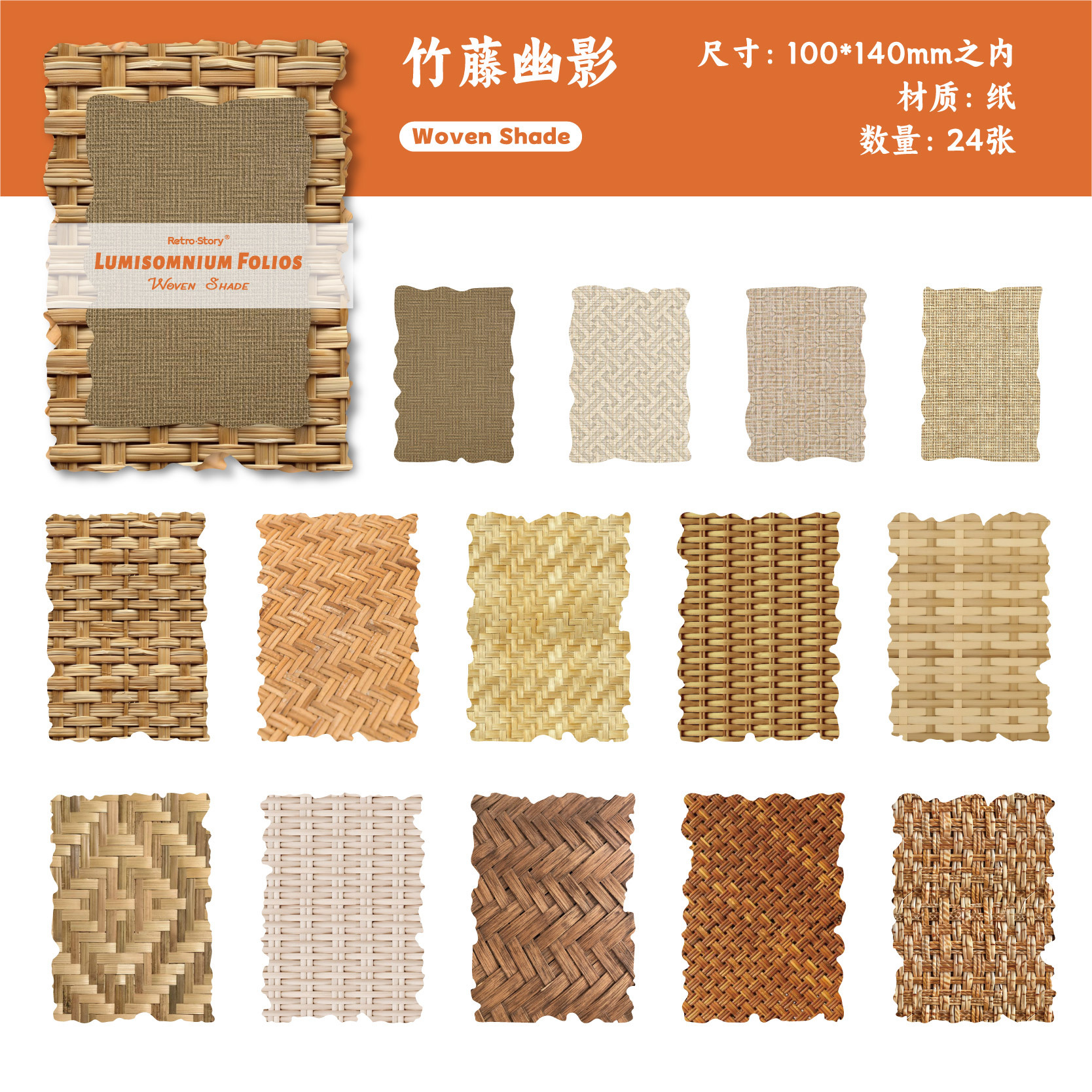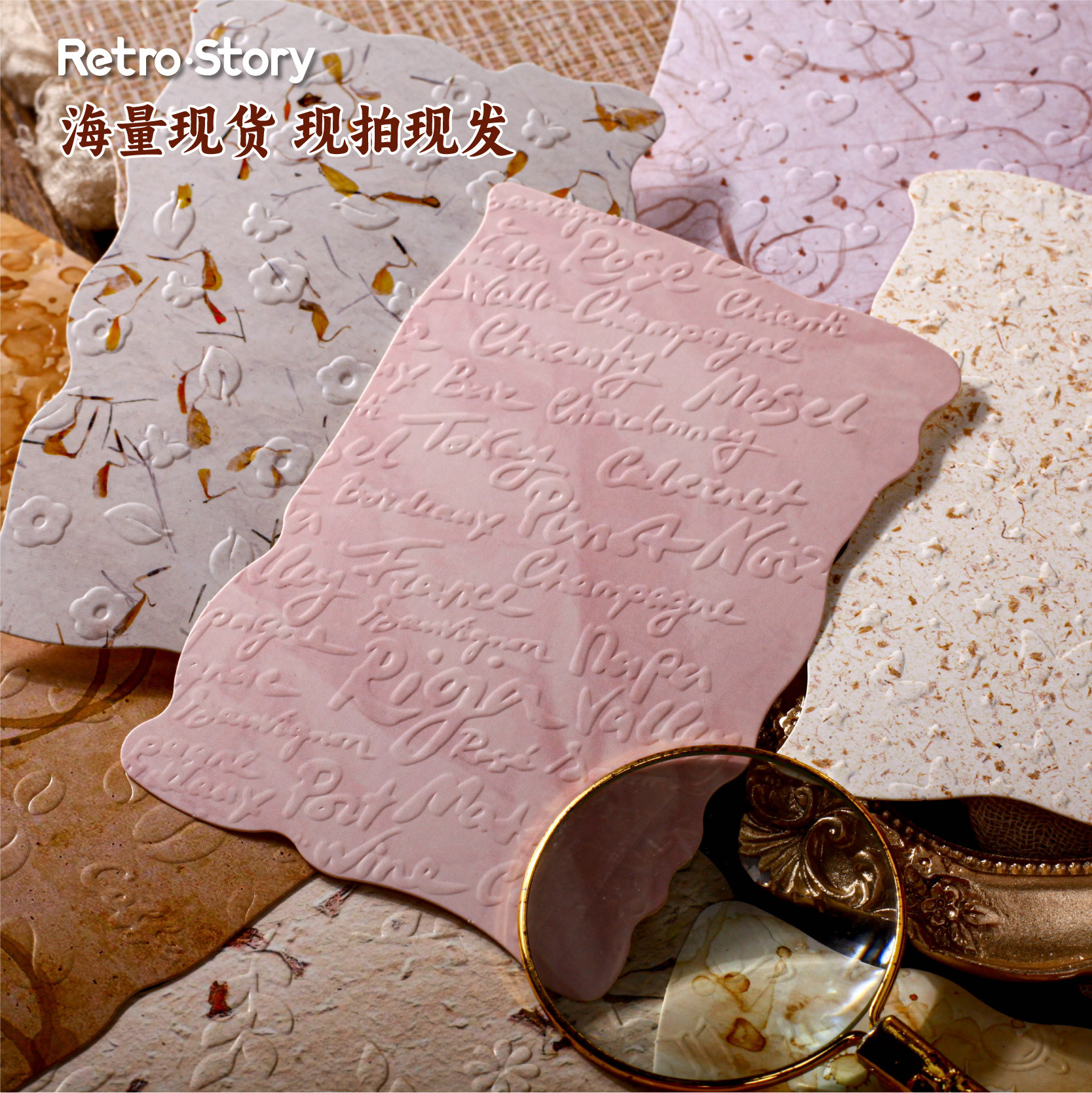 24Pcs/Pack Retro Plant Theme Special Paper Embossed Background Material Paper