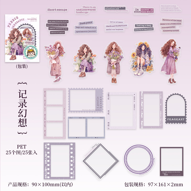 25Pcs/Pack Frame Cute Girls PET Stickers