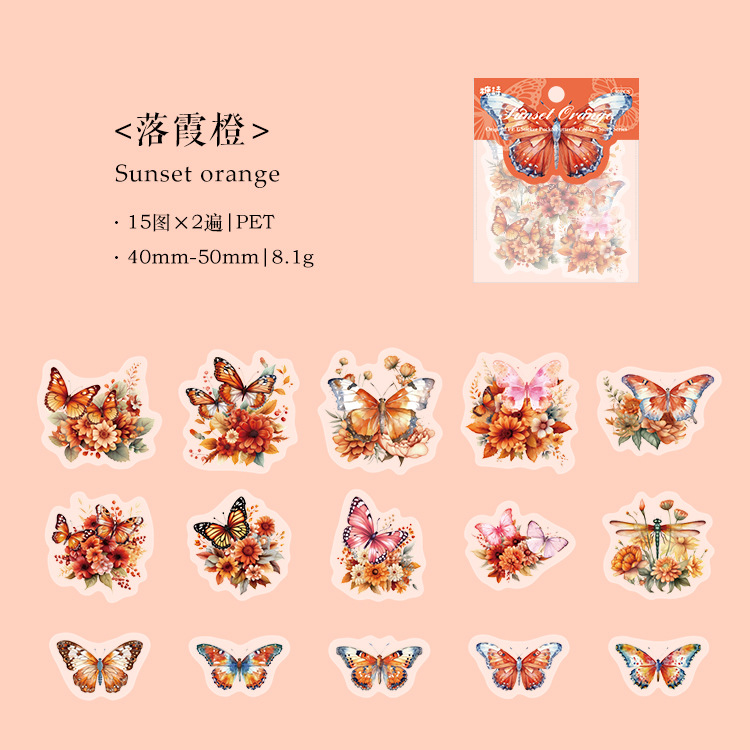30Pcs Butterfly Theme PET Stickers