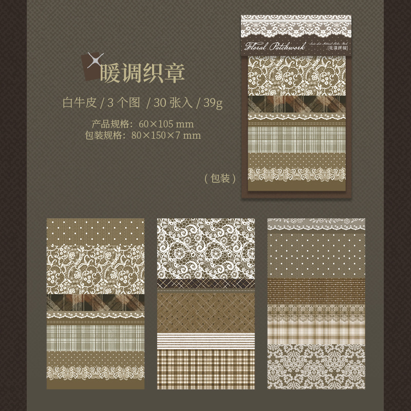 30Pcs Vintage Lace Theme Kraft Paper Sticker Book