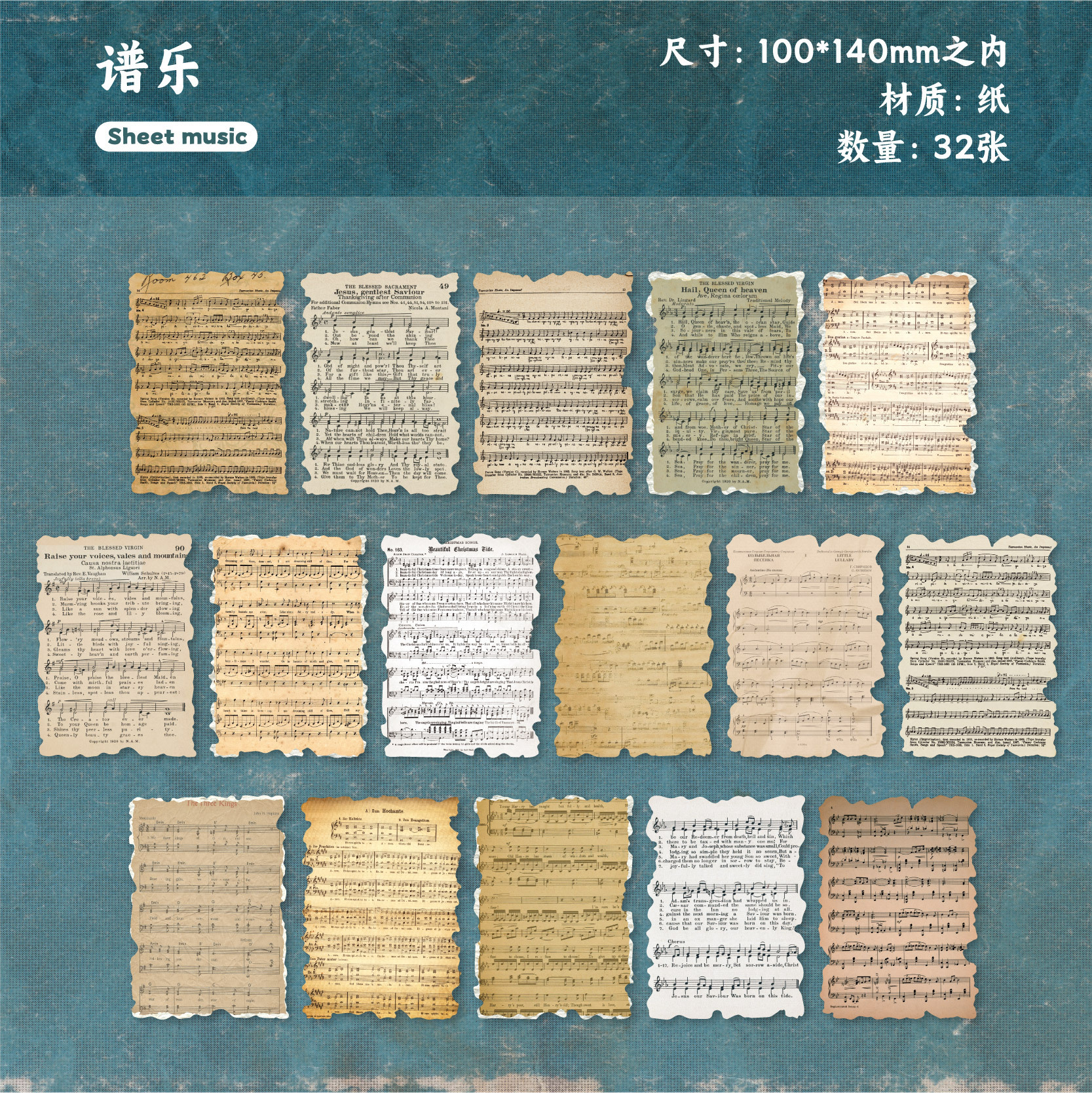32Pcs/Pack Vintage Music Sheet Newspaper Theme Material Paper