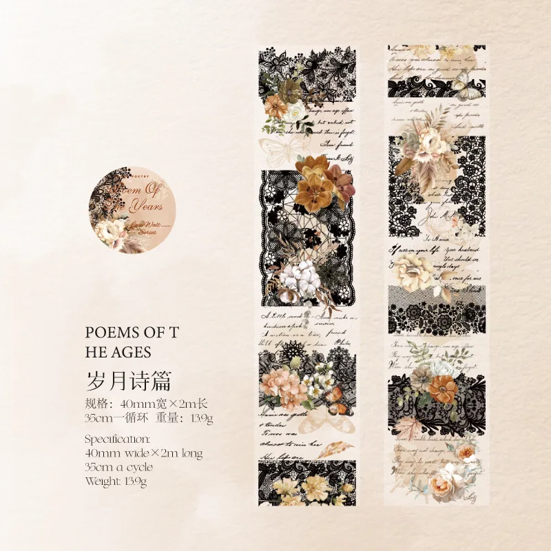 40mm*2m Lace floral themed PET Tape