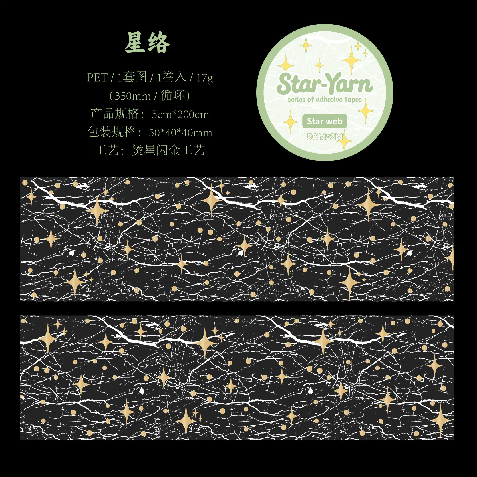 Star mesh themed PET tape 1.97 * 78.74 inches