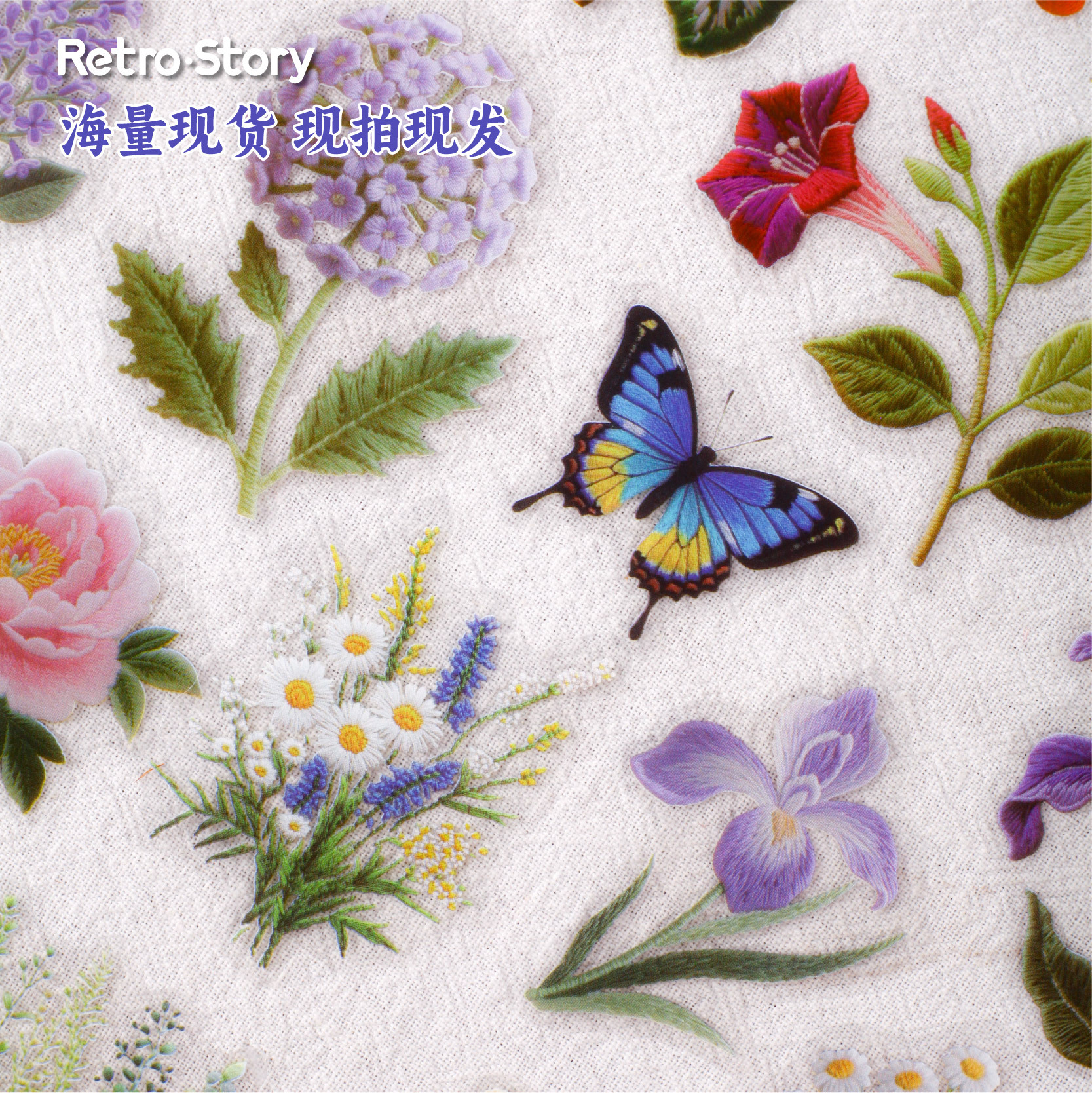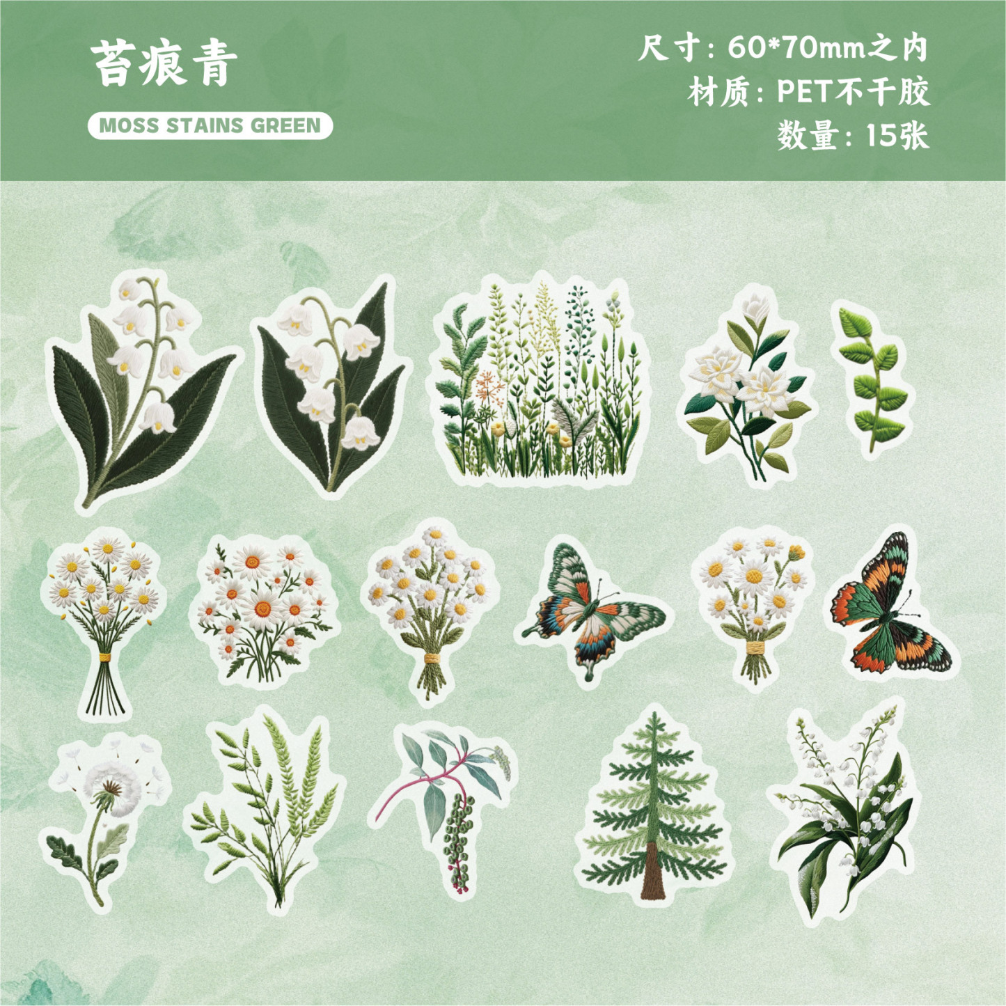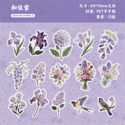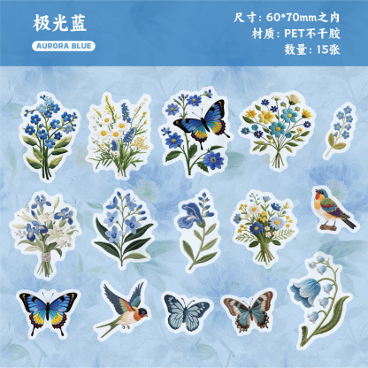 15Pcs/Pack Embroidery Flowers Plants Theme PET Stickers