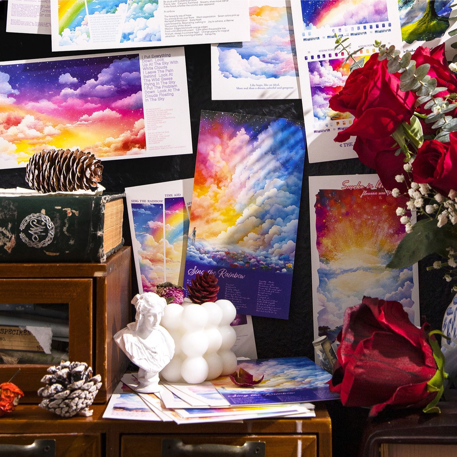 20Sheet/Pack Rainbow Landscape Cyberpunk Theme Background Material Paper