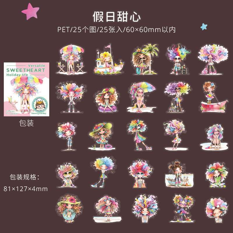 25Pcs/Pack Holiday Girls Theme PET Stickers