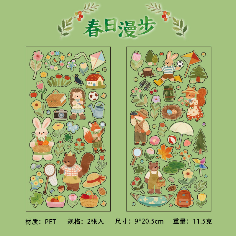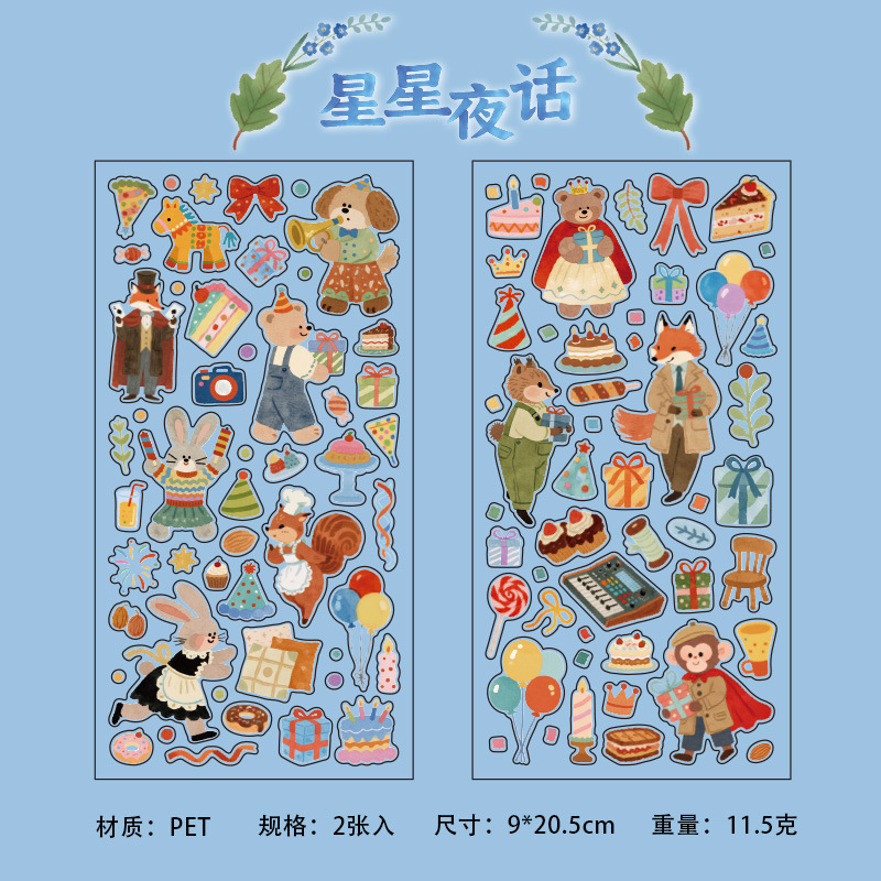 2Pcs/Pack Cute Elements Collage Theme PET Stickers