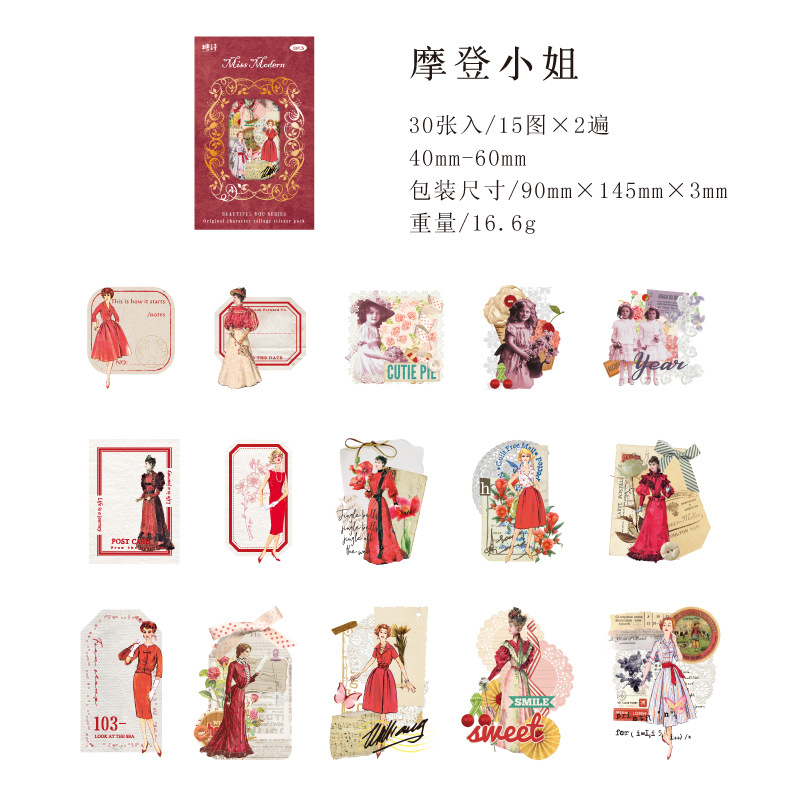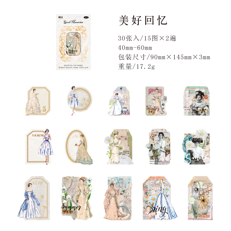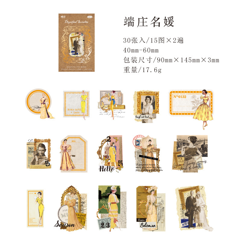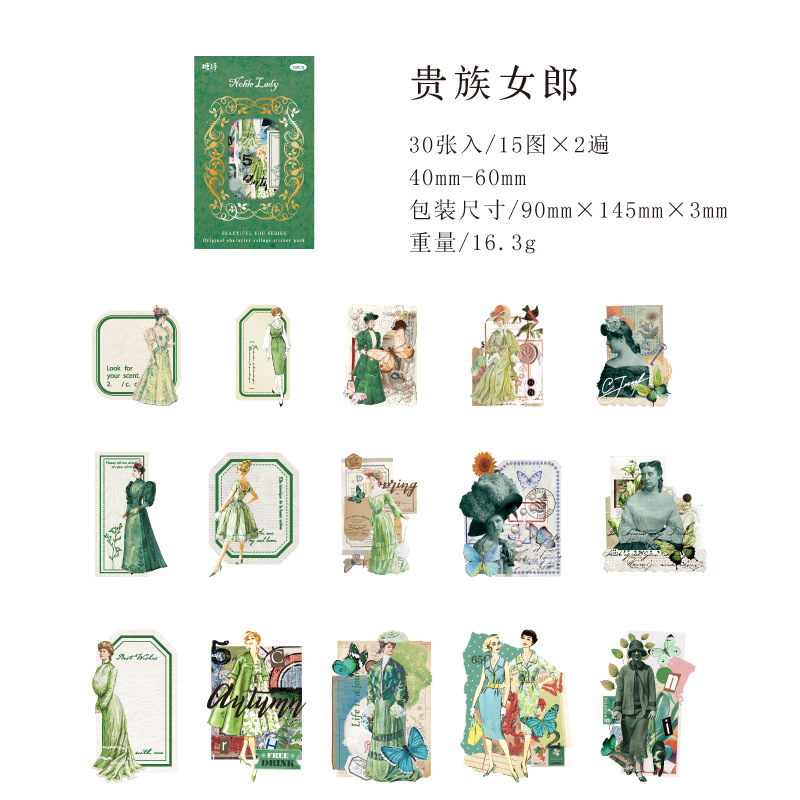30Pcs/Pack Retro Character Theme Washi Stickers