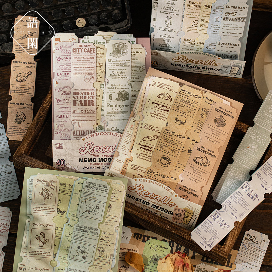 40 Pcs Vintage Ticket Stickers