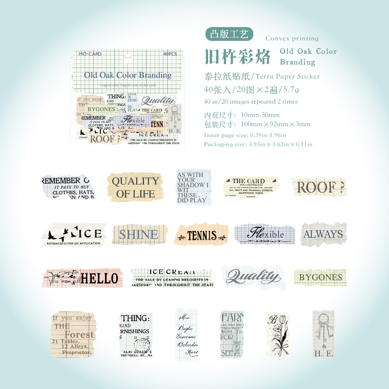 40Pcs/Pack Retro English Theme Cards, Paper, Stickers