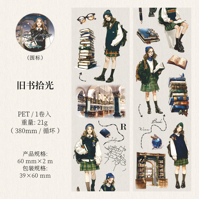 Paris travel themed PET tape 2.36*78.74 inches