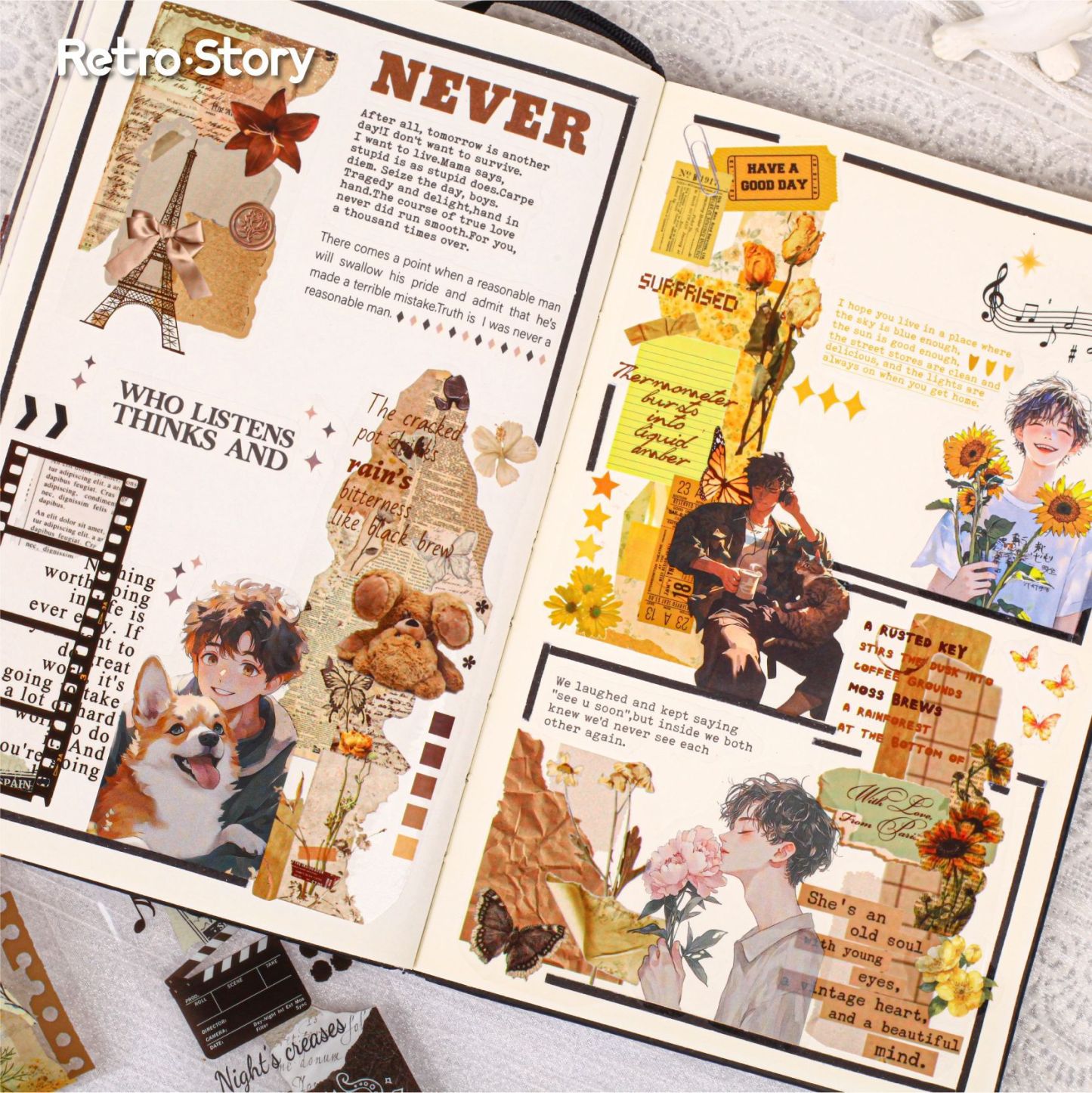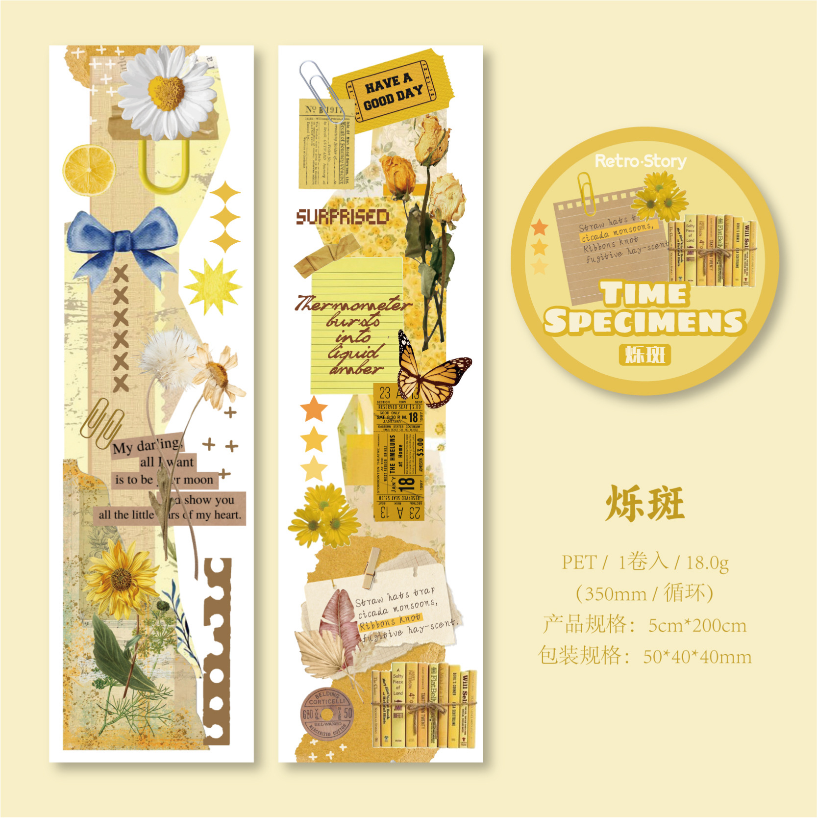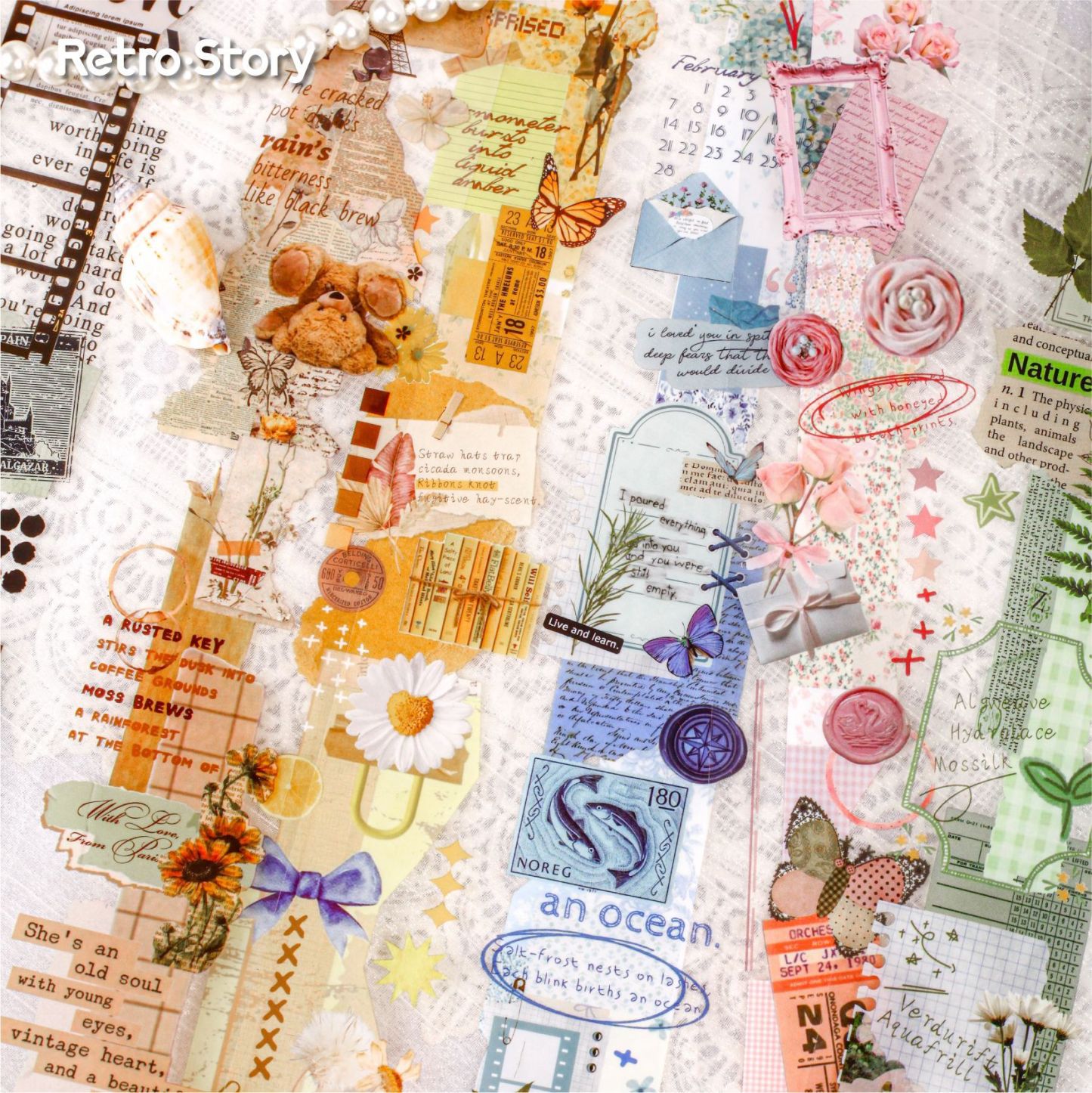 Vintage Journaling collage theme PET tape 1.97*78.74 inch