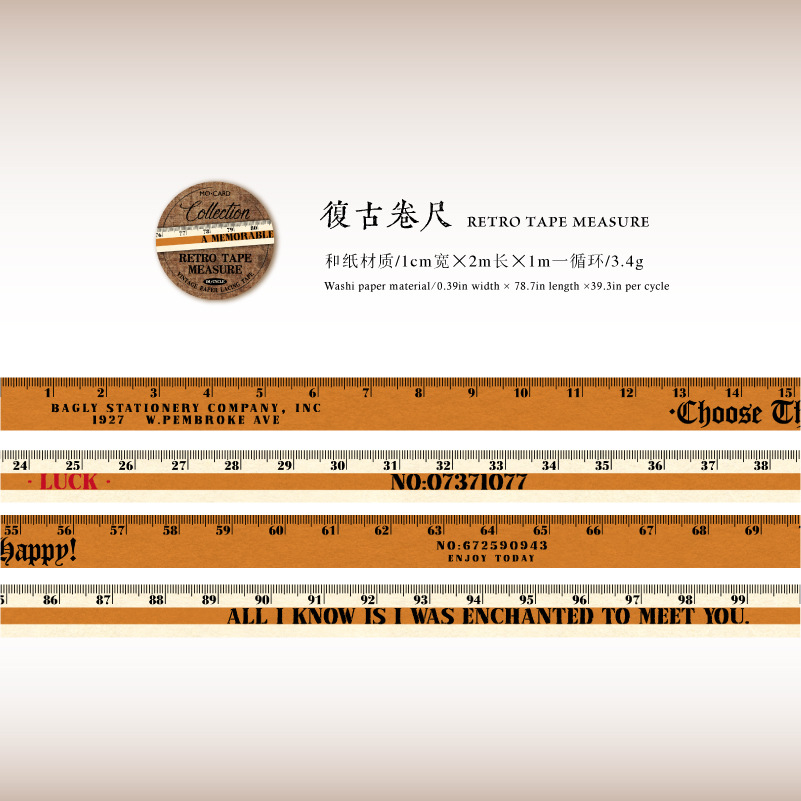 Vintage measuring tape Theme Washi tape 0.39*78.74 inch