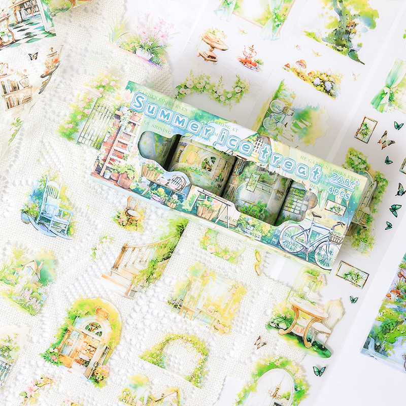 4 rolls/set of PET tape with spring town scenery theme