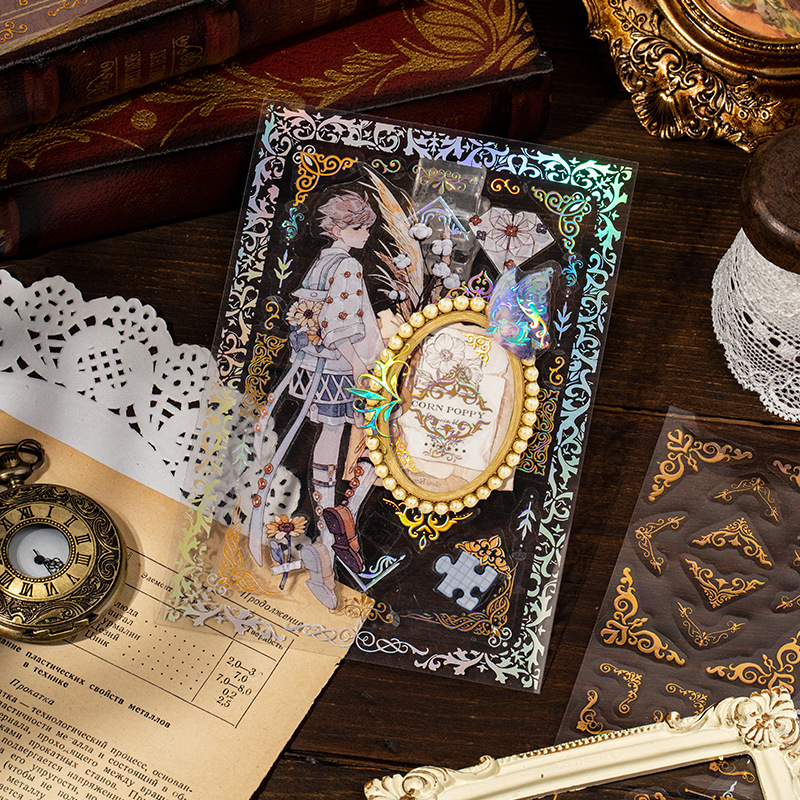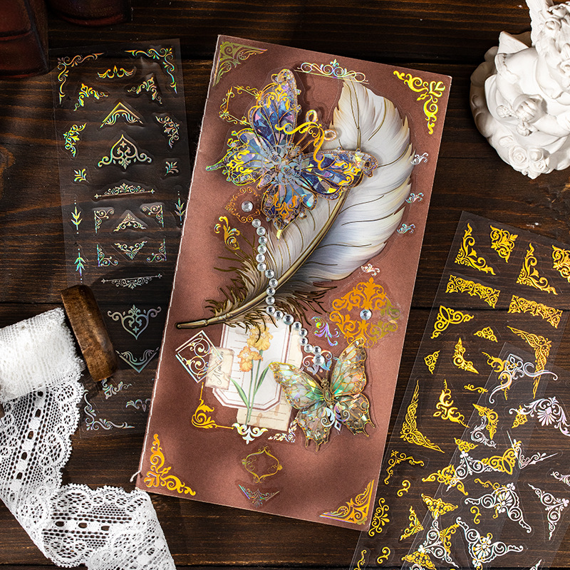 2Sheet/Pack Retro Corner Hot Stamping PET Sticker