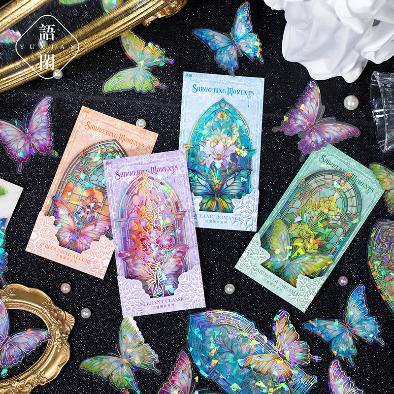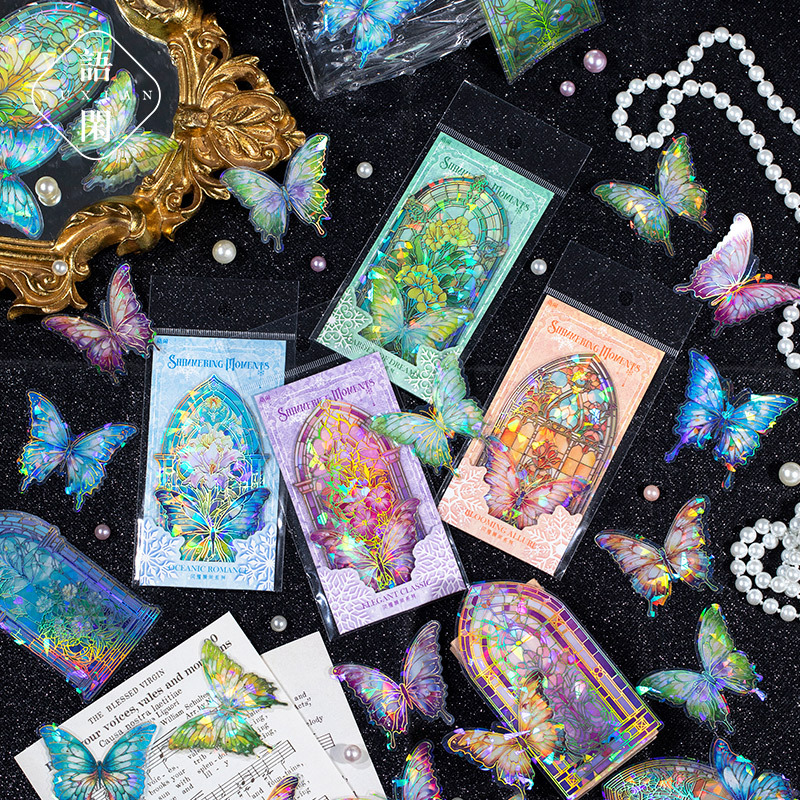 10Pcs/Pack Holographic Shining Butterfly Theme PET Stickers