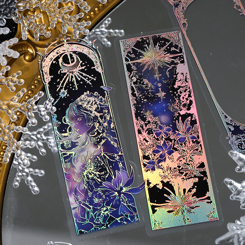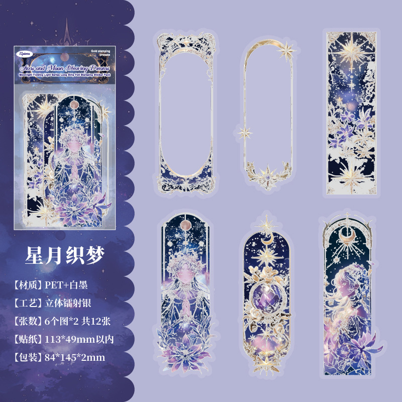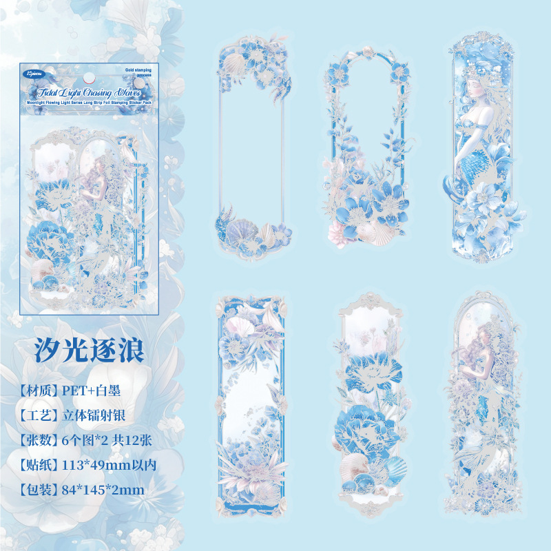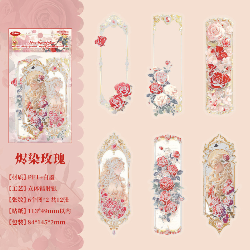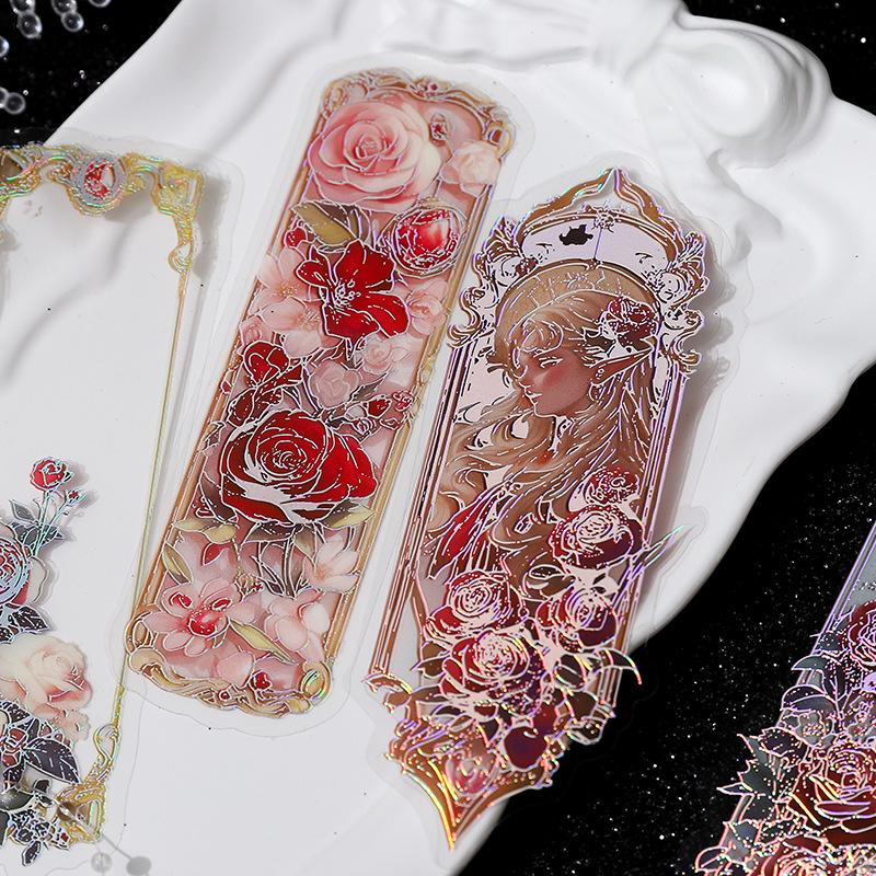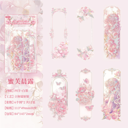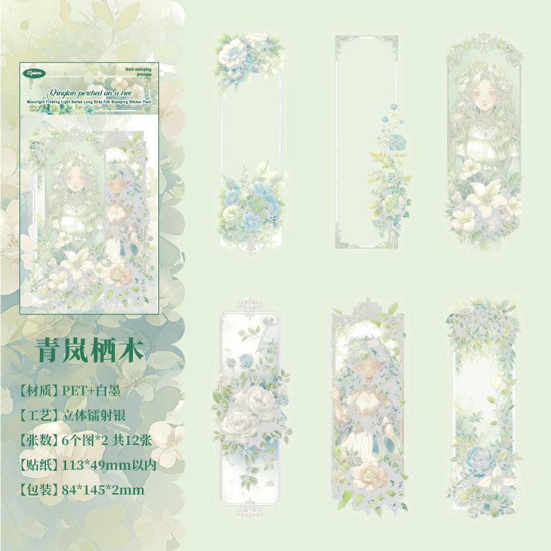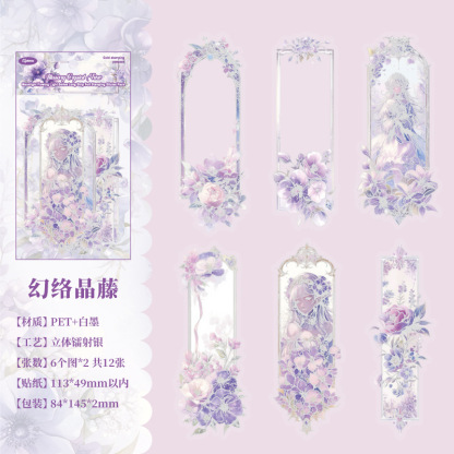 12 Pcs/Pack Long Holographic Floral PET Stickers