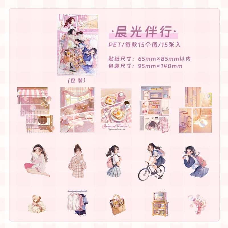 15Pcs/Pack Campus Girl Theme PET Stickers