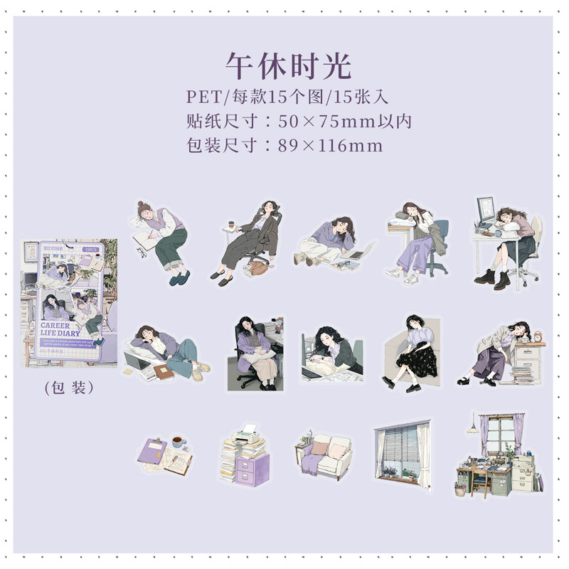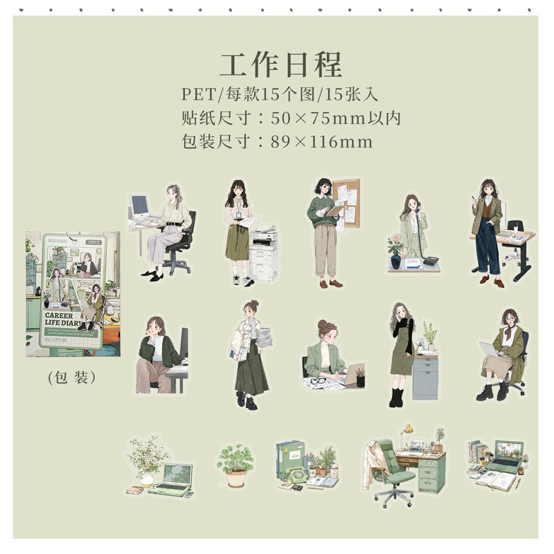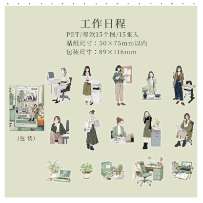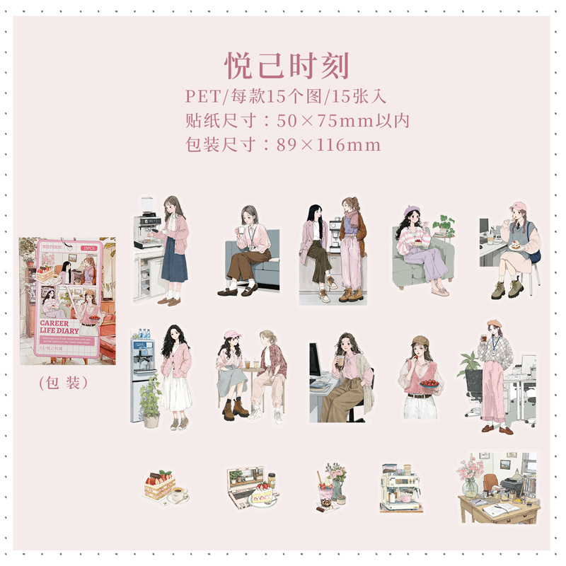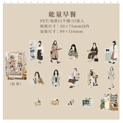 15Pcs/Pack Girls Themed PET Stickers