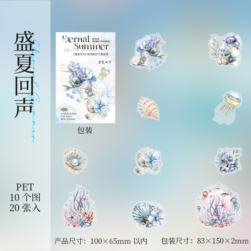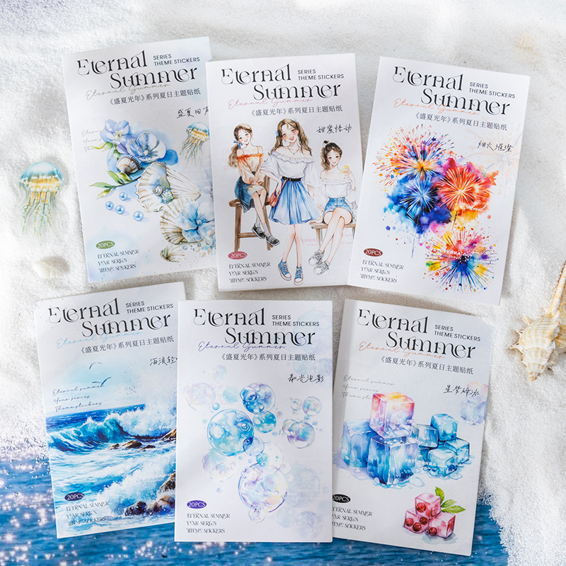 20Pcs/Pack Summer Ocean Girl Theme PET Stickers
