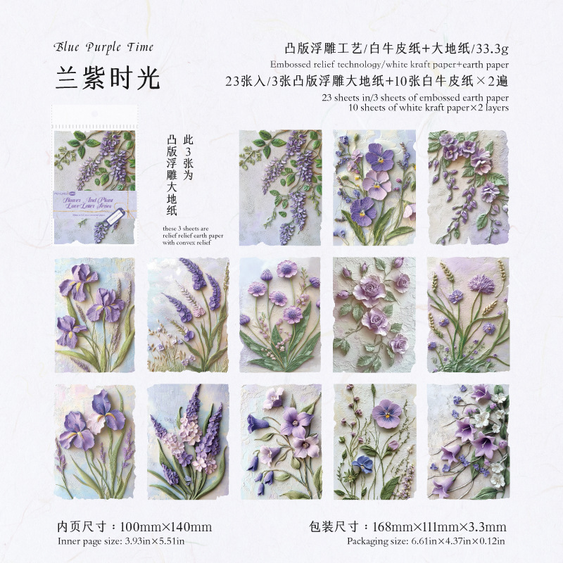 23Pcs/Pack Letterpress Embossed Flowers and Plants Material Paper