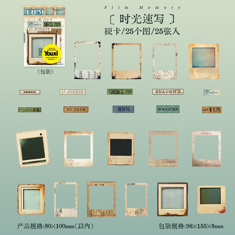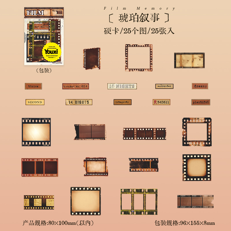 25cs/Pack Retro Movie Theme Hard Card Stickers