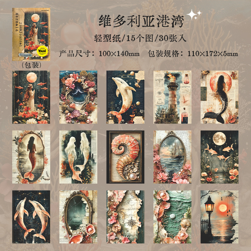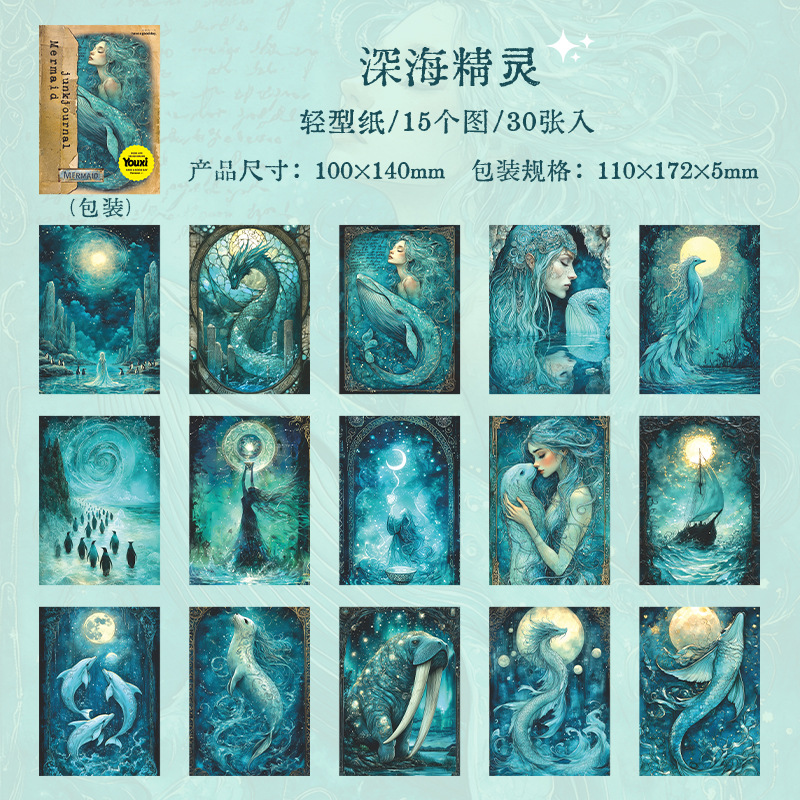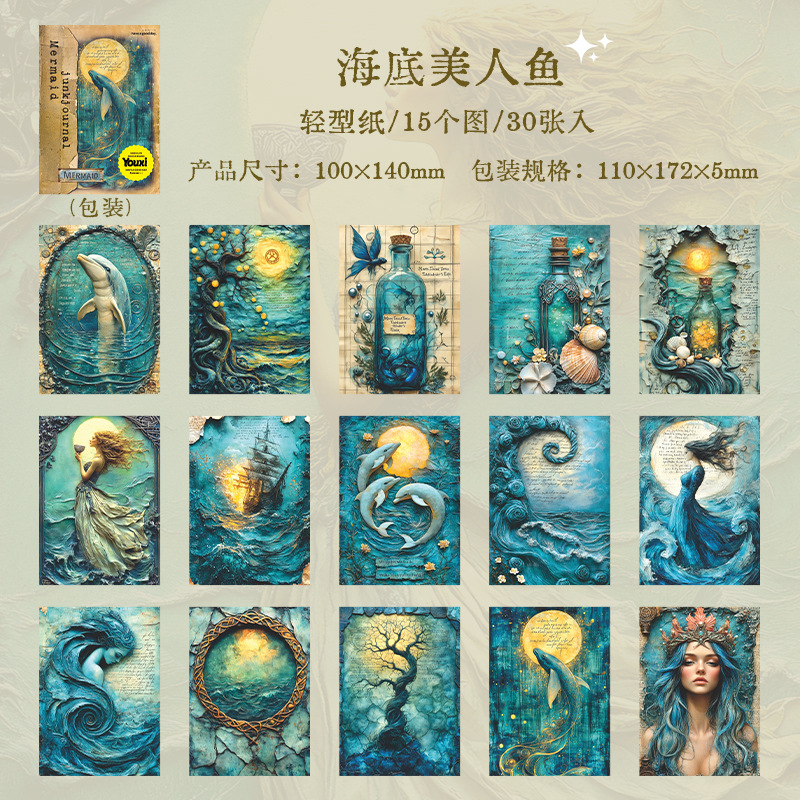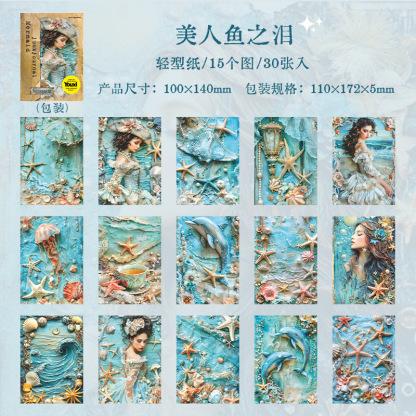 30Pcs/Pack Mermaid Theme Background Material Paper