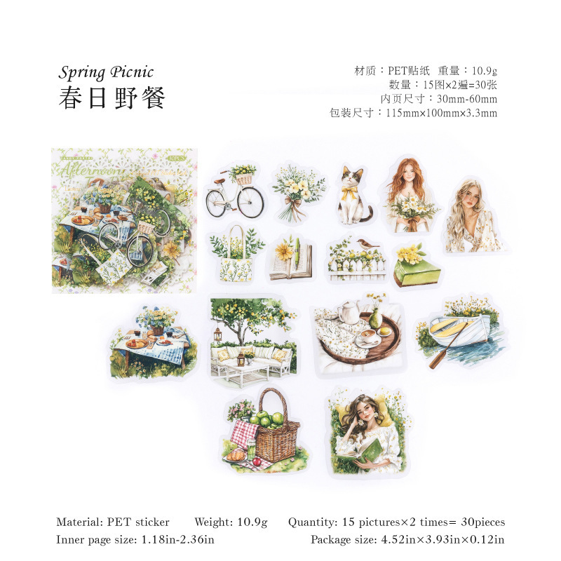 30Pcs/Pack Picnic Camping Theme PET Stickers