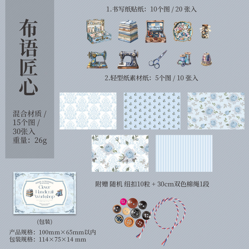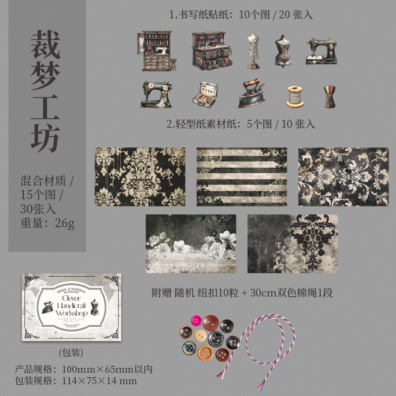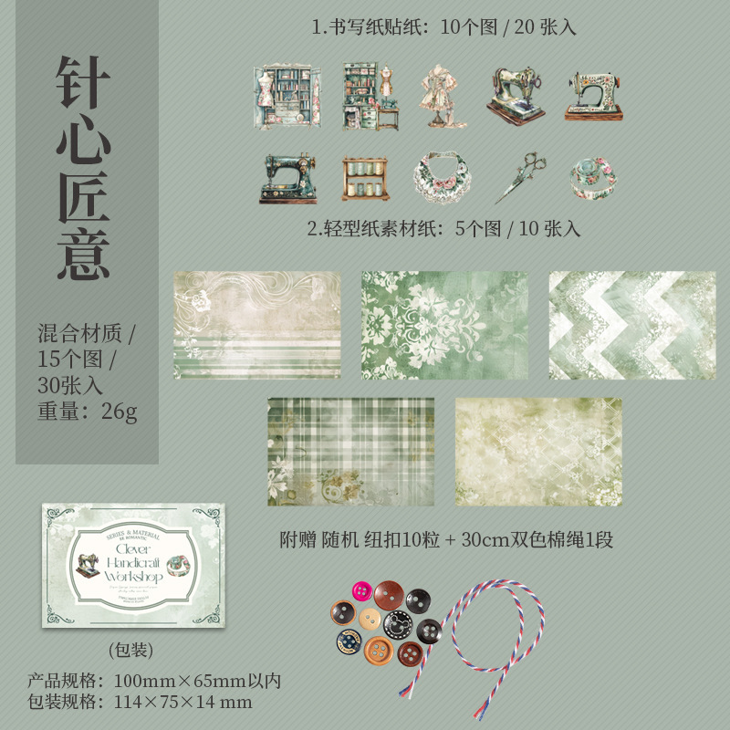 30Pcs/Pack Sewing Theme Mixed Material Pack