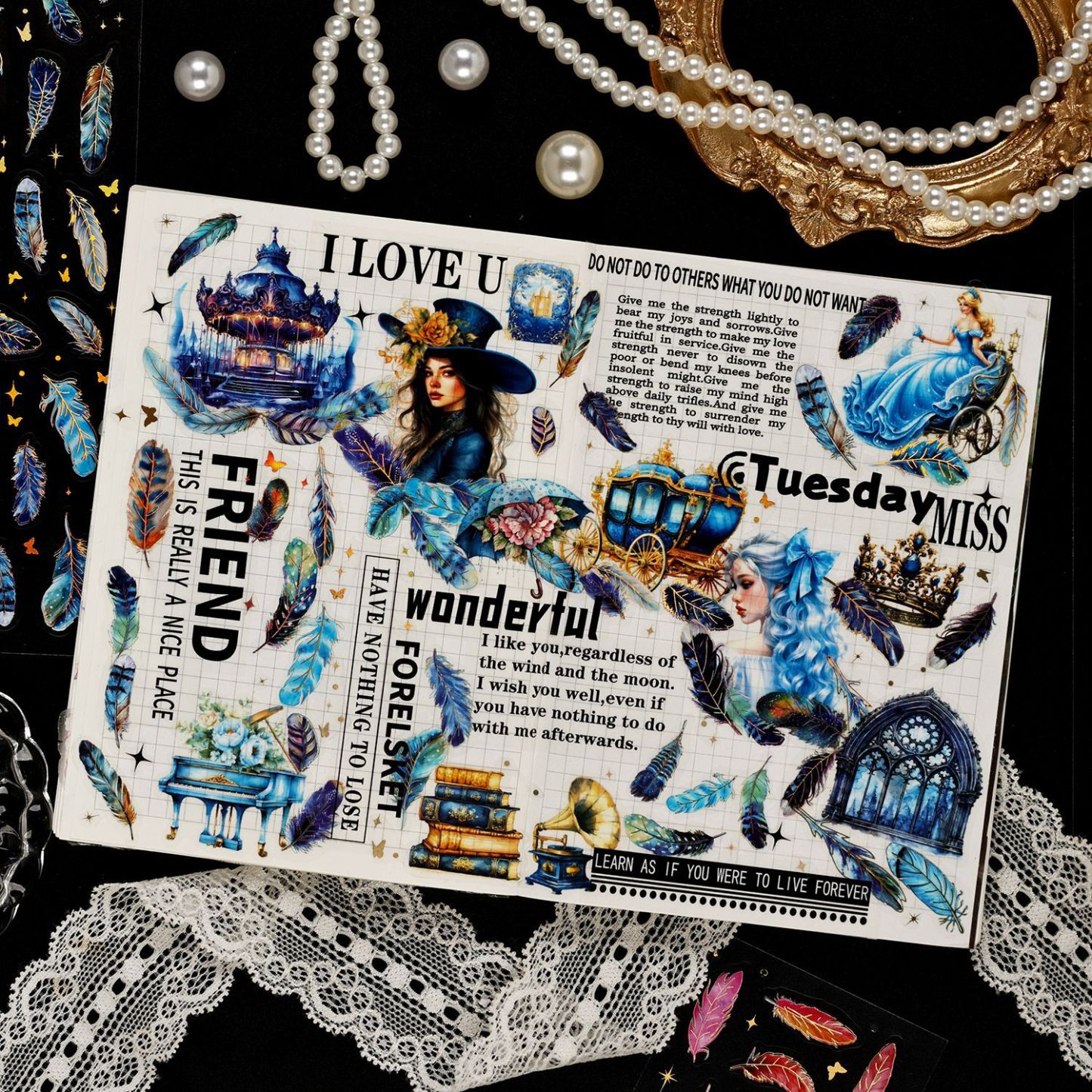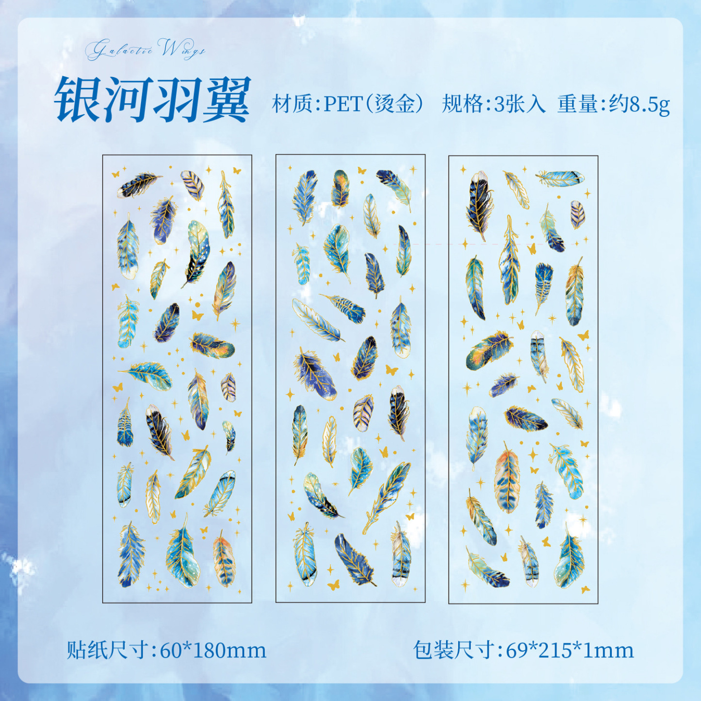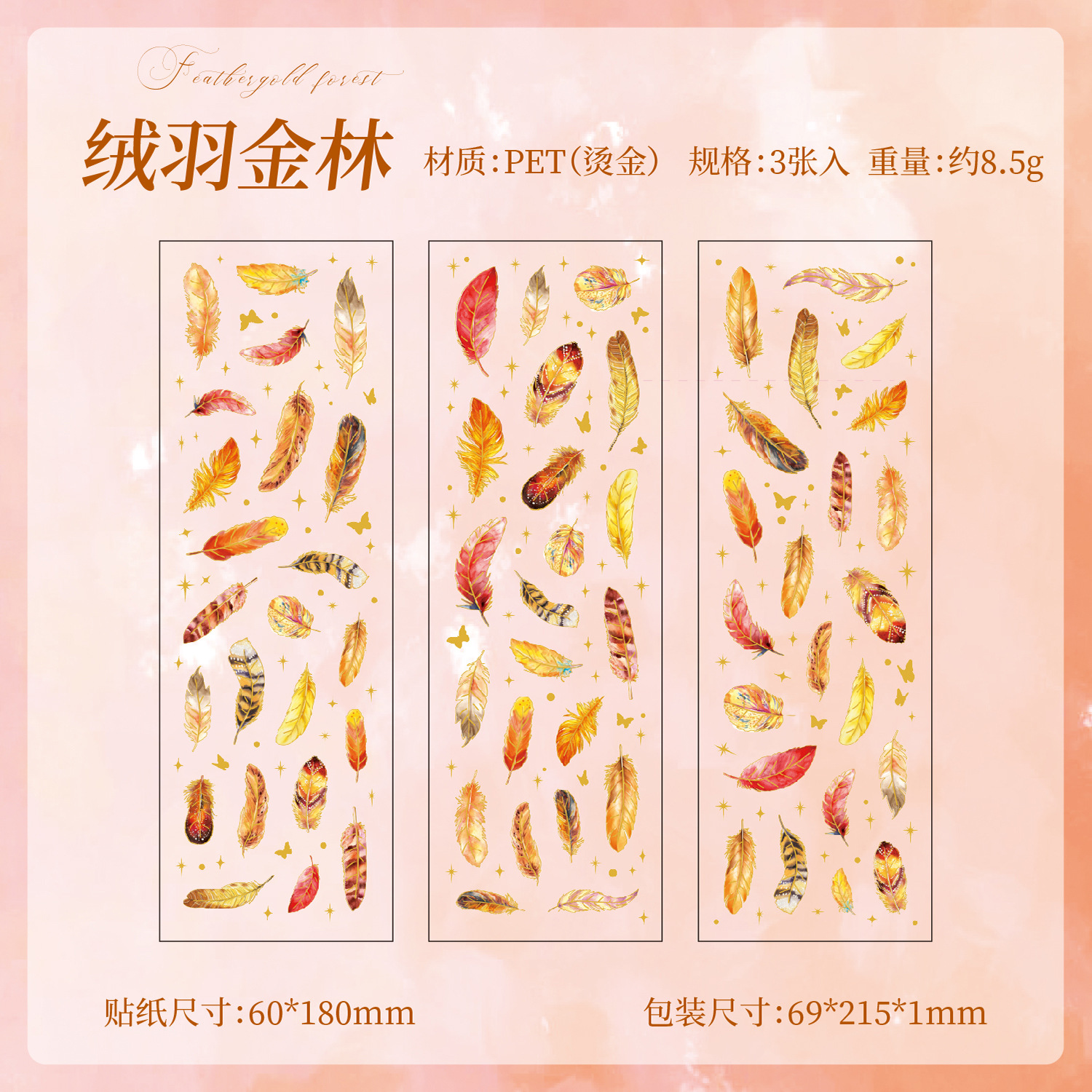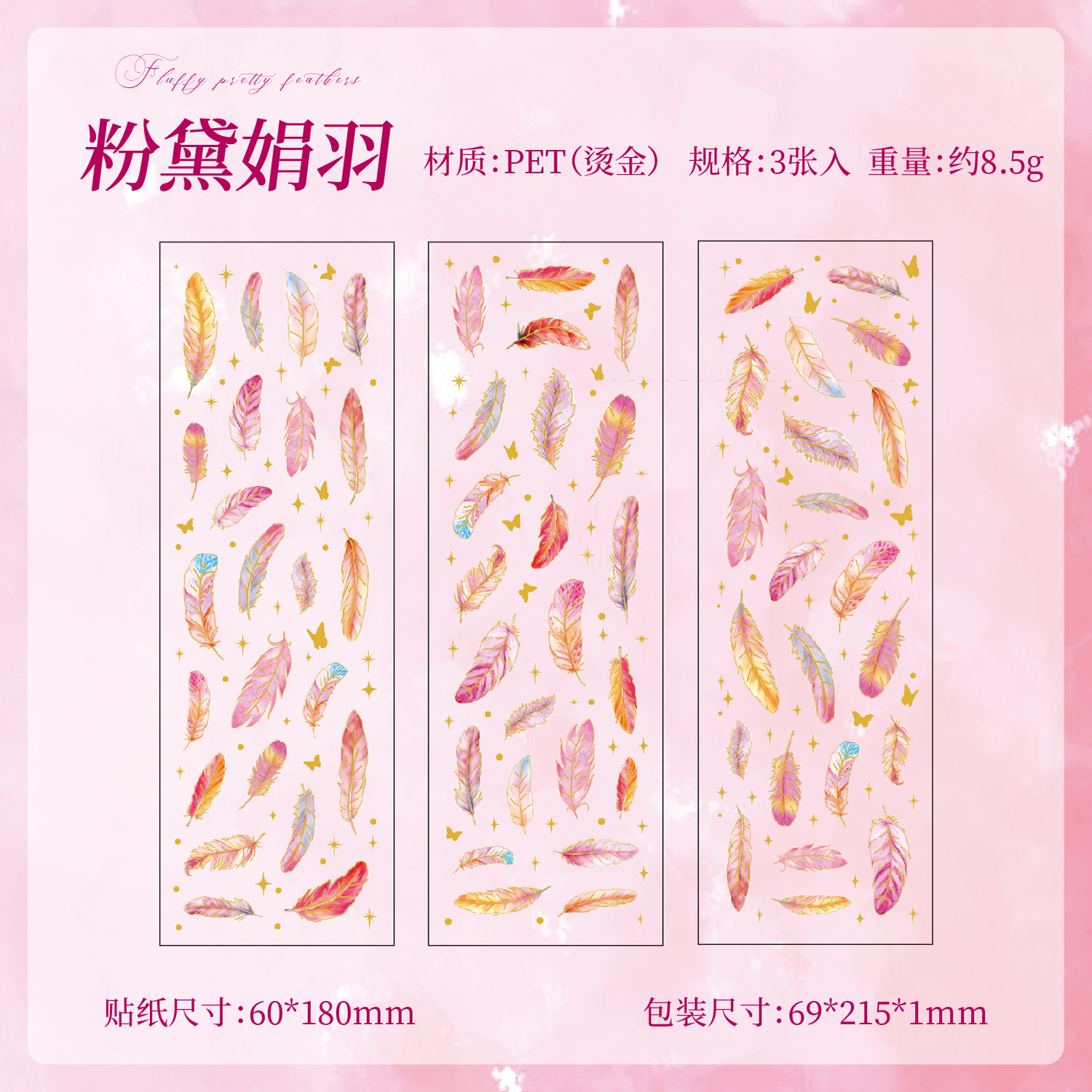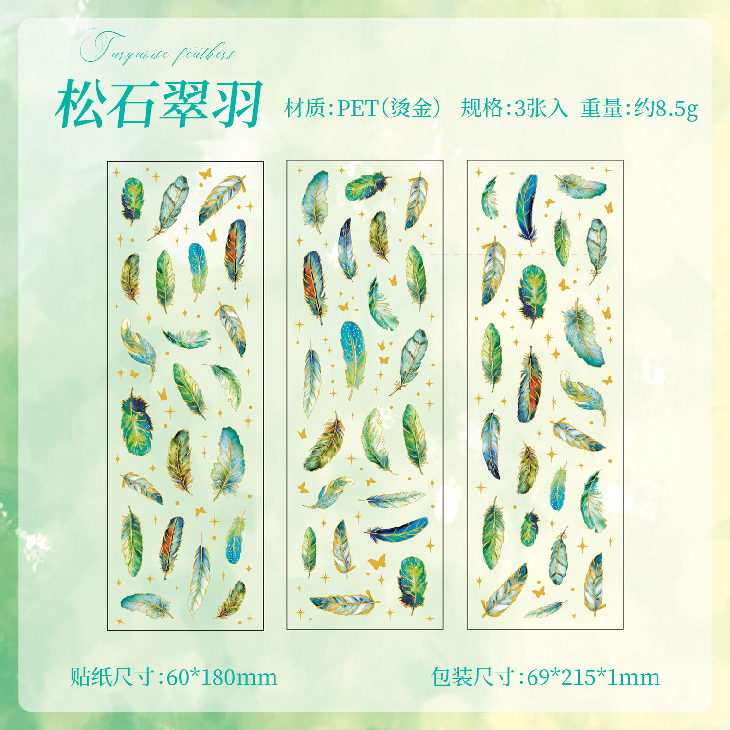 3Pcs/Pack Feather Theme PET Stickers