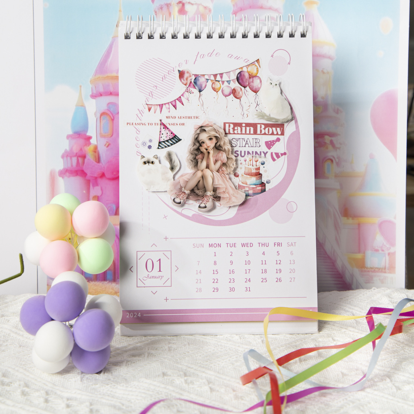 50Pcs/Pack Cute Girl and Pet Cat PET Stickers