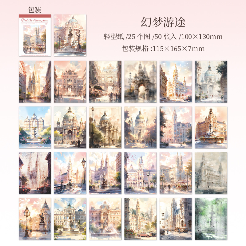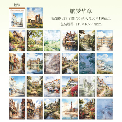 50Pcs/Pack Journey Scenery Theme Material Paper