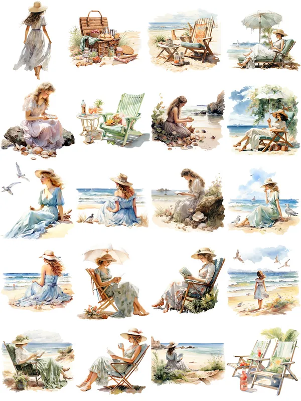 15pcs/1lot Summer Girls Travel Themed PET Stickers