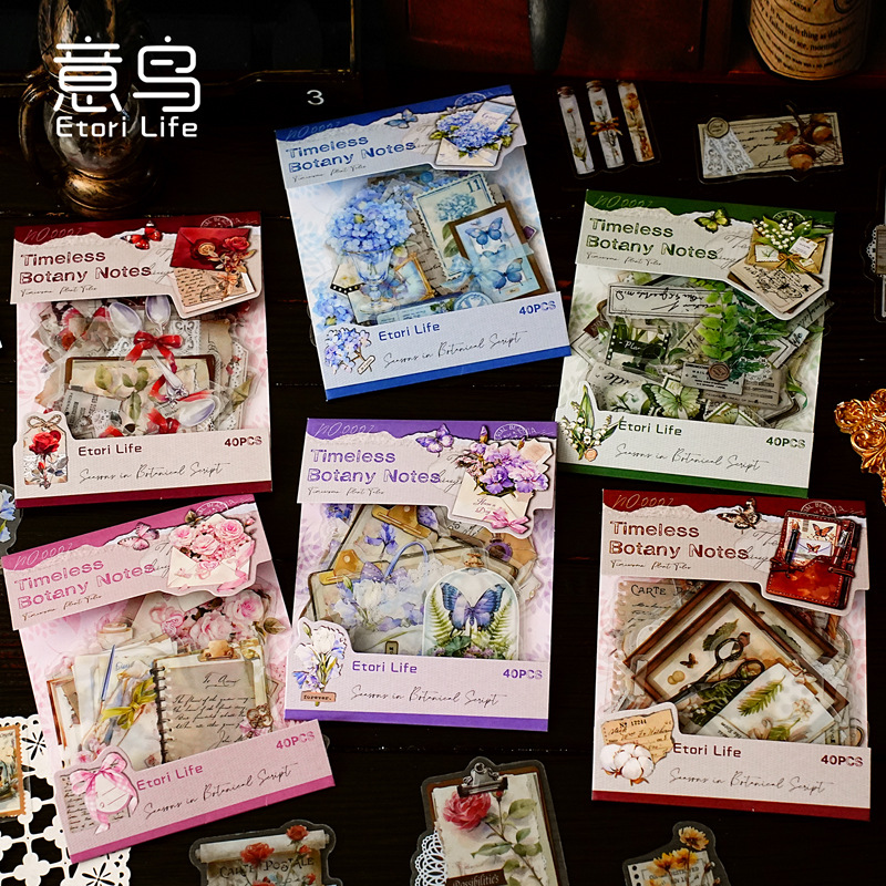 40Pcs/Pack Floral Text Collage Theme PET Stickers