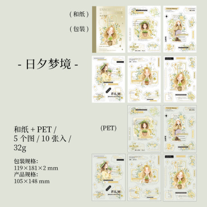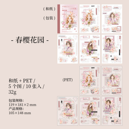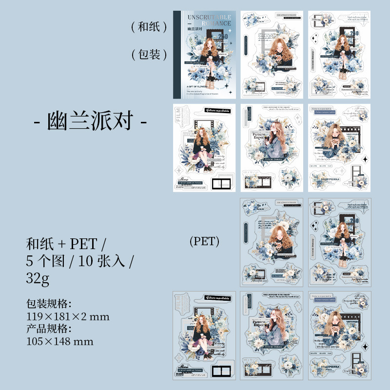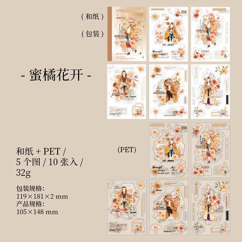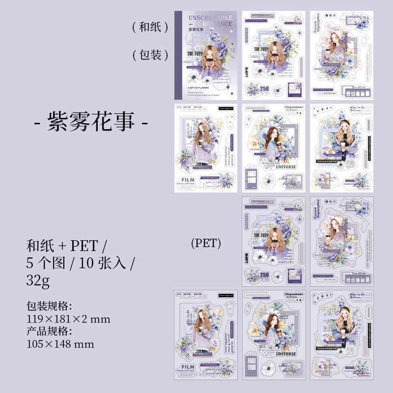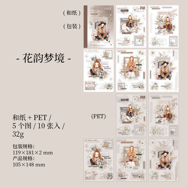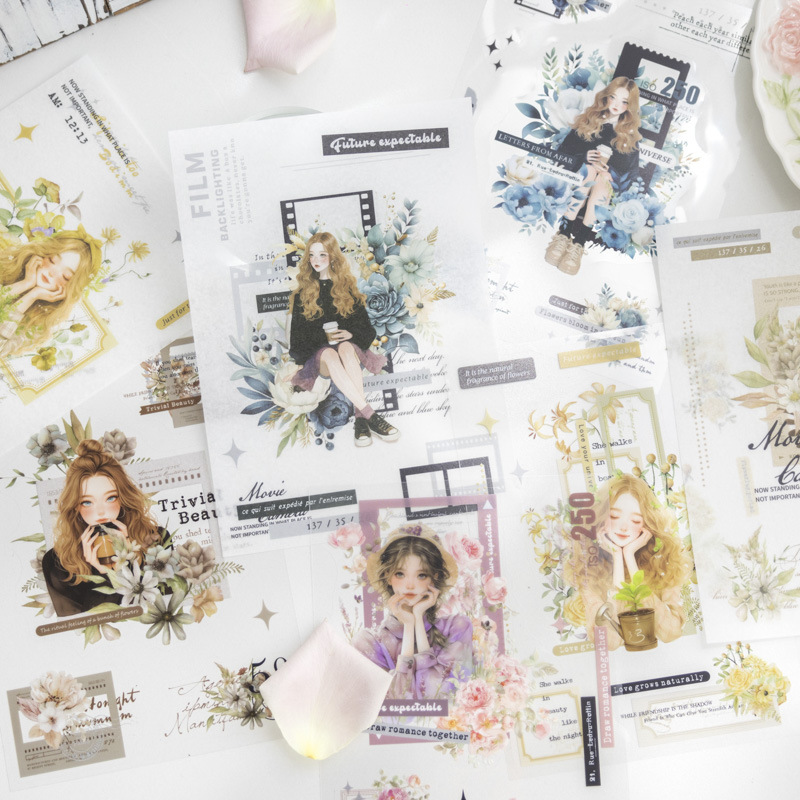 10pcs Floral Girl Theme PET Washi Sticker Book