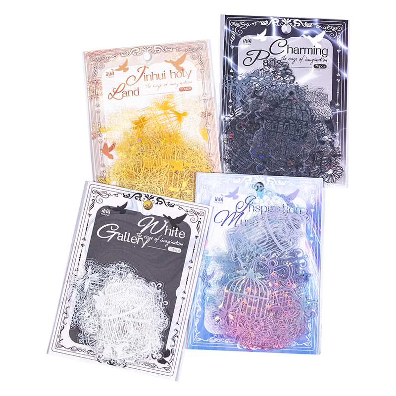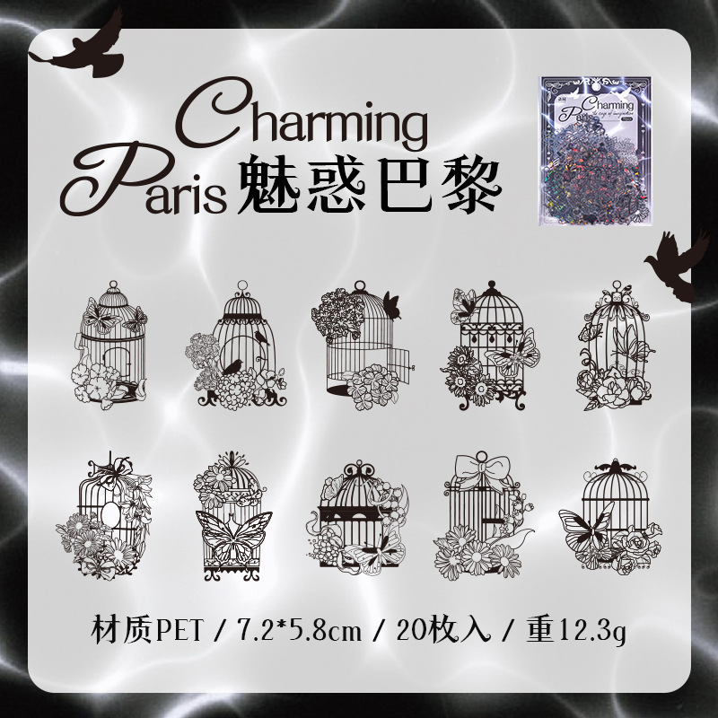 20Pcs/Pack Bird Cage Theme Shell Light PET Stickers