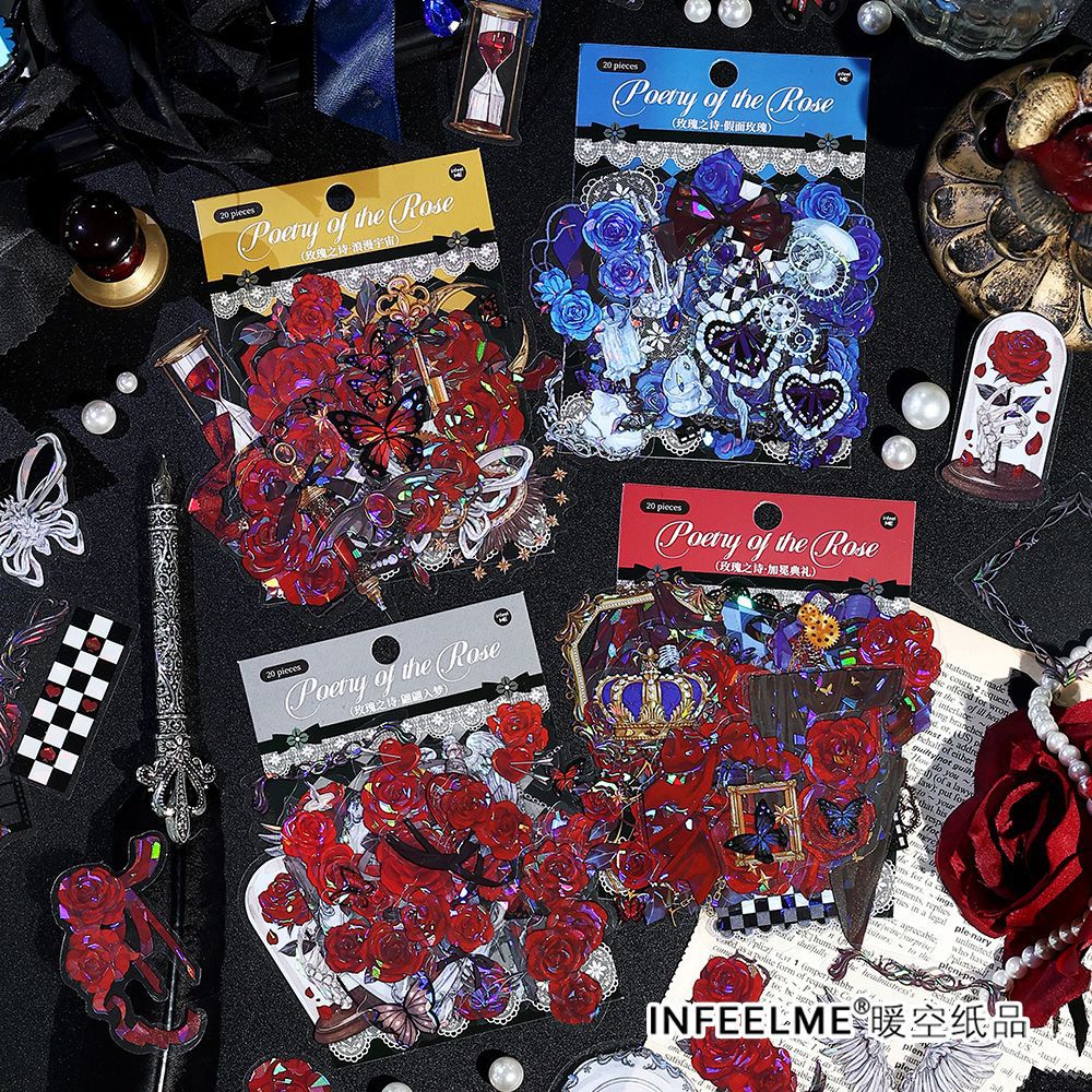 20Pcs/Pack Rose Flower Theme PET Shell Light Stickers