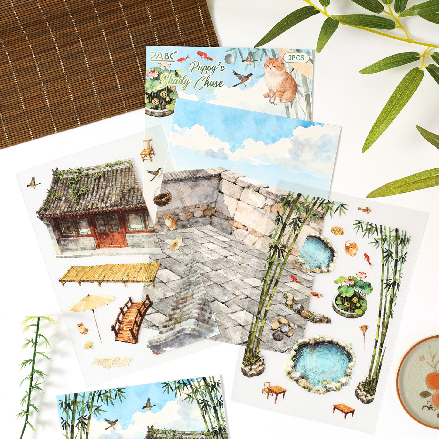 3 Sheet Asian Landscape PET Sticker