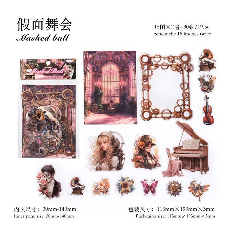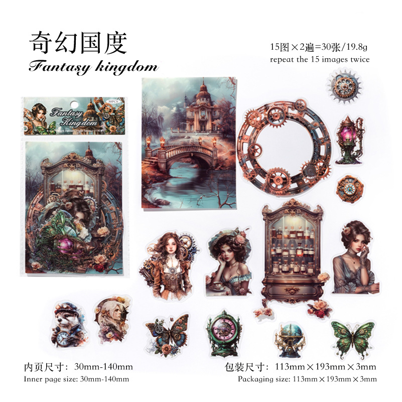 30Pcs/Pack Steampunk Theme Shell Light PET Stickers