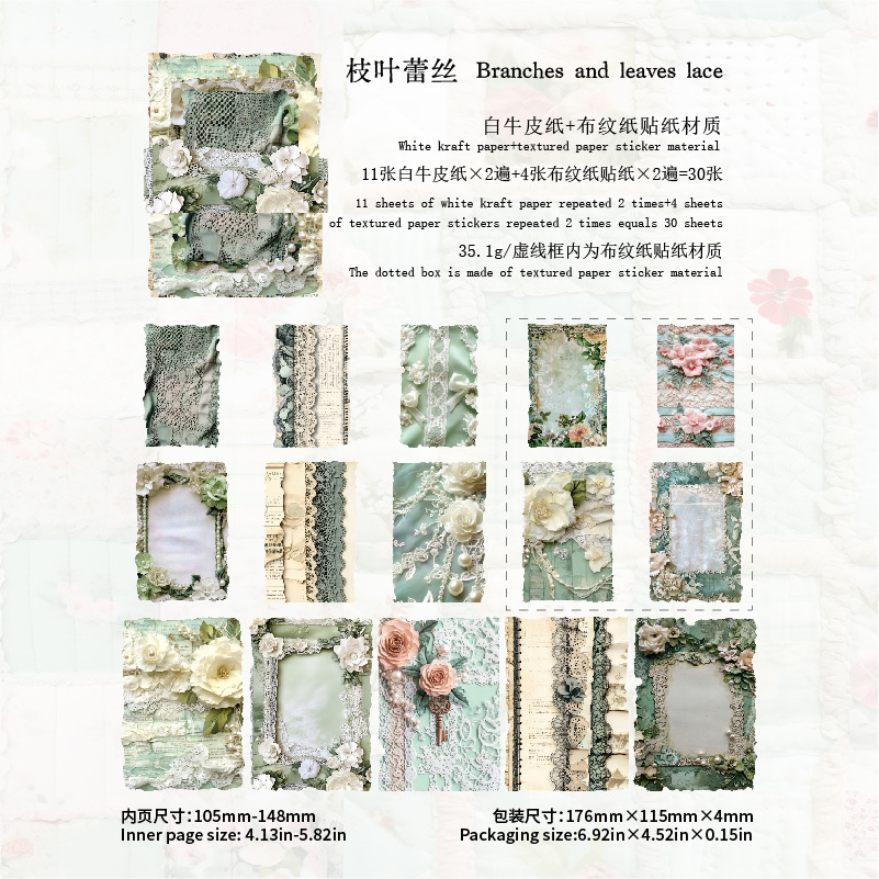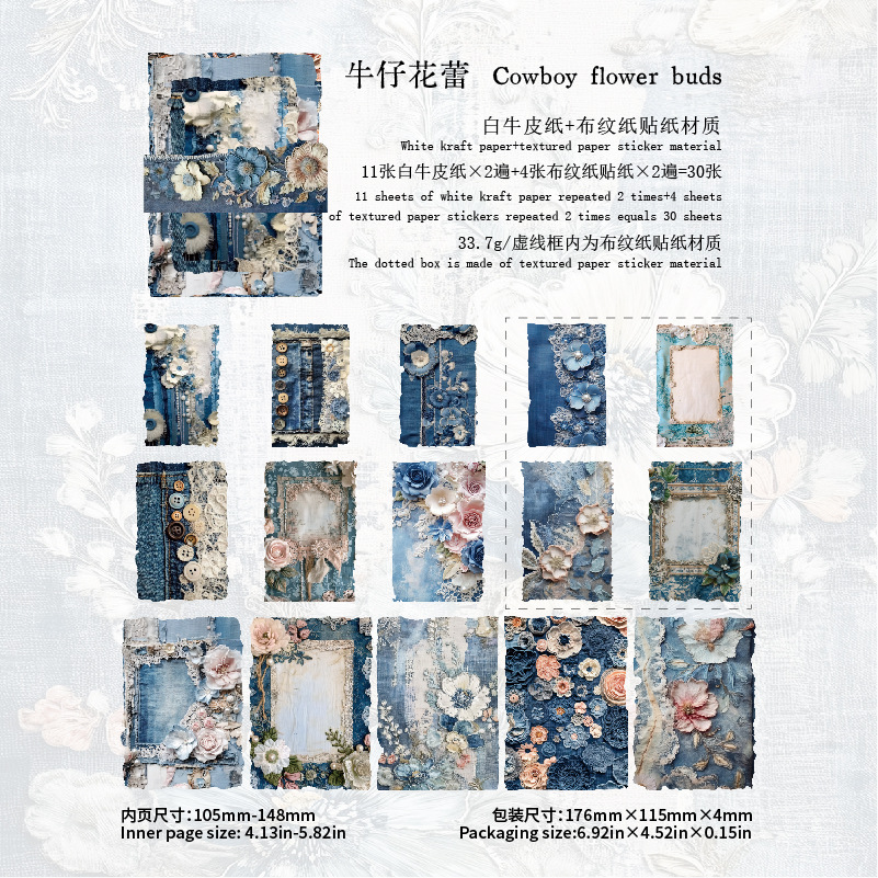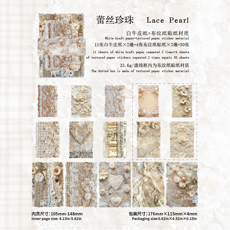 30Pcs/Pack Vintage Fabric Theme Background Material Paper