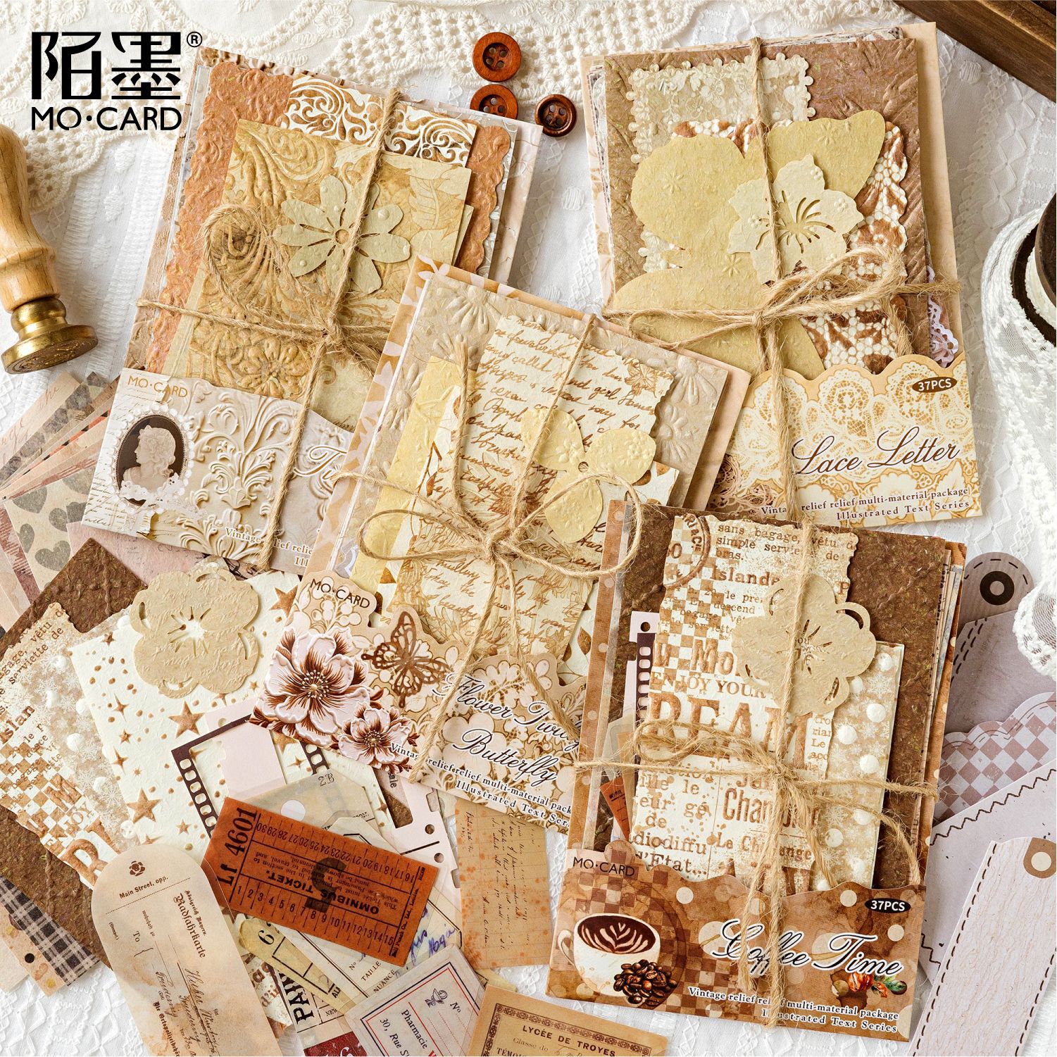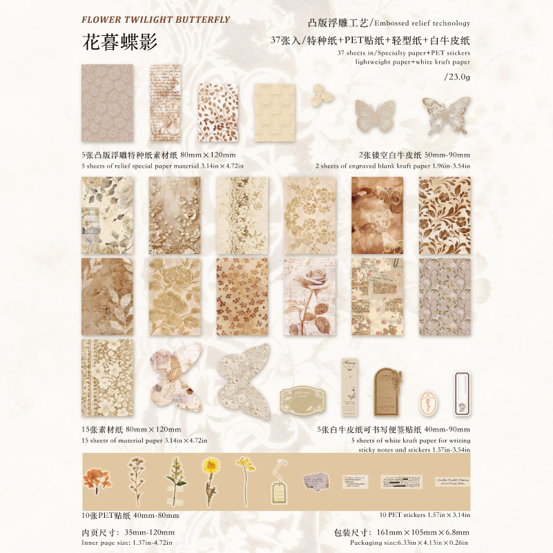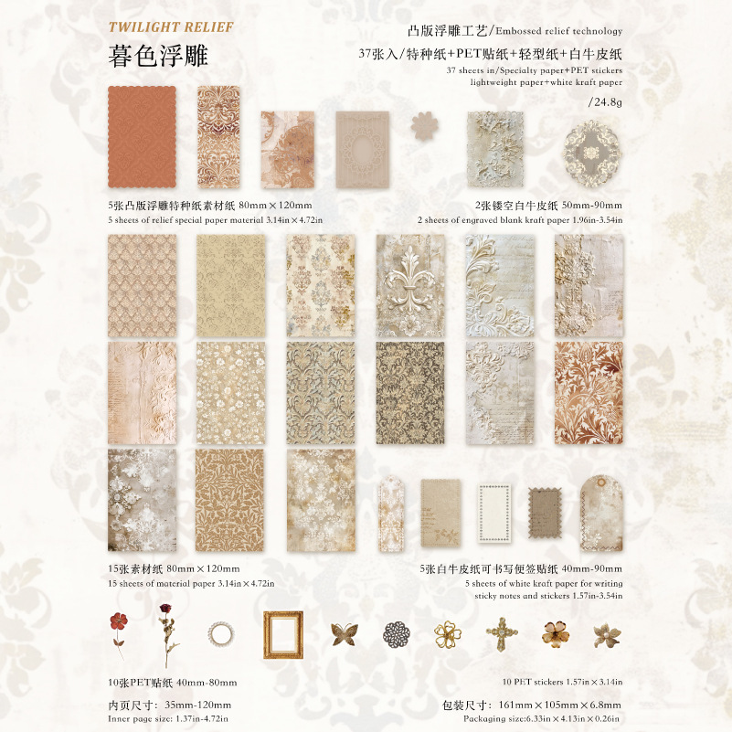 37 Pcs/Pack Mixed Materials Vintage Embossed Letter Material Paper