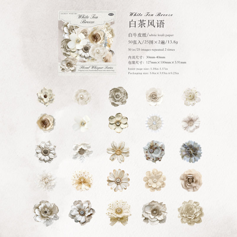 50Pcs Vintage Floral Theme Hard Card Stickers