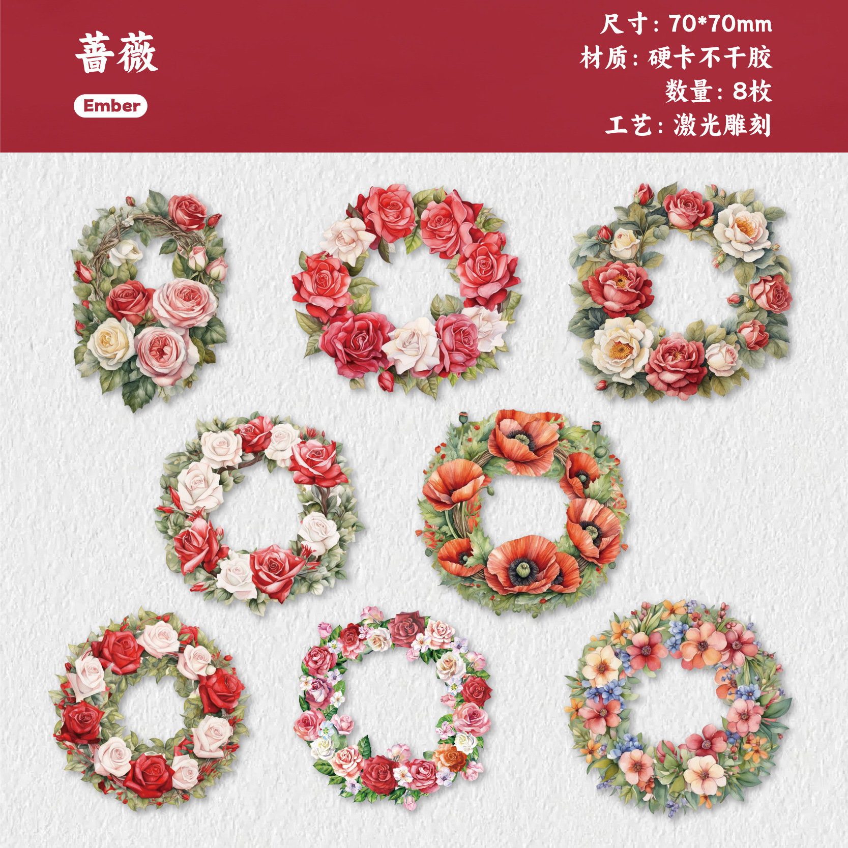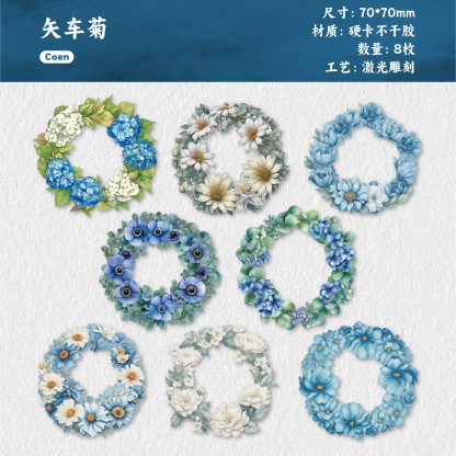 8 Pcs/Pack Flower Theme Card Stickers