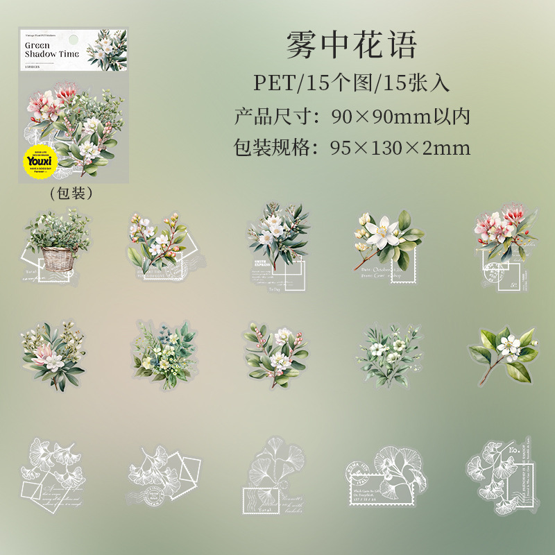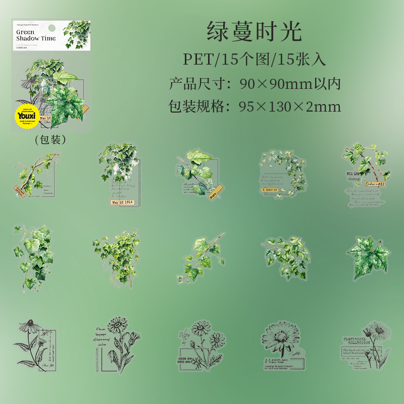 9Pcs/Pack Potted Plant Theme PET Stickers
