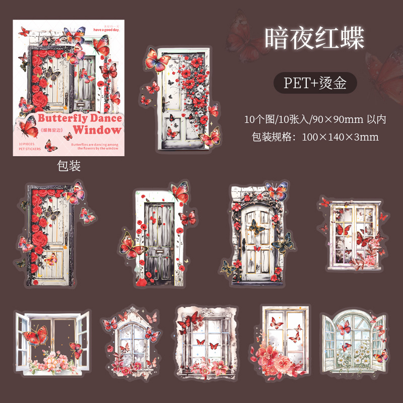 10Pcs/Pack Butterfly Window Door Theme PET Stickers