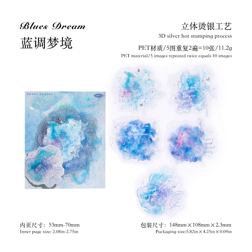 10Pcs/Pack Watercolor Flower Theme PET Stickers