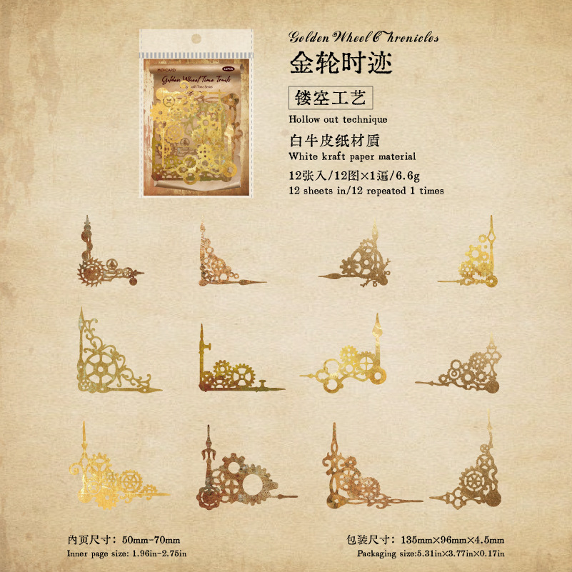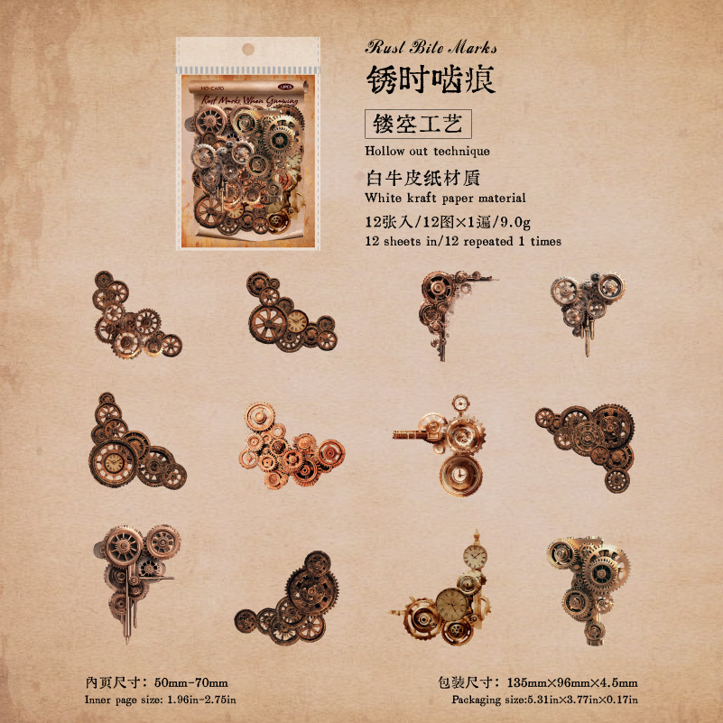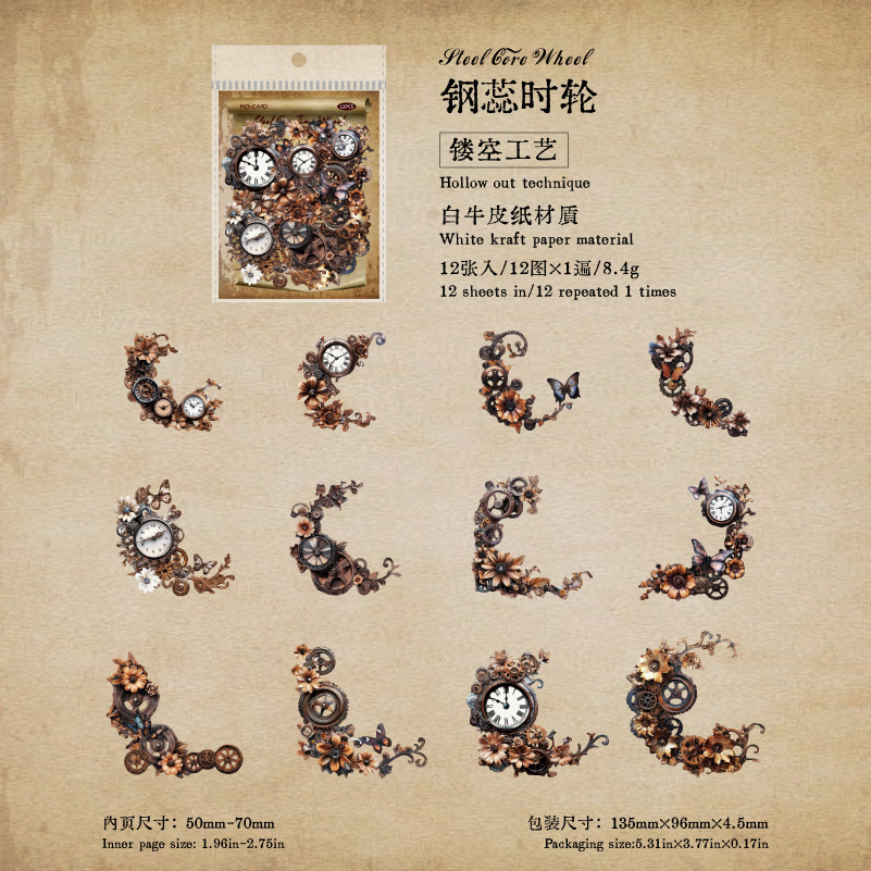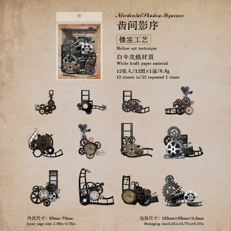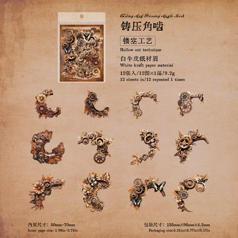 12Pcs/Pack Retro Steampunk Gear Corner Card Sticker
