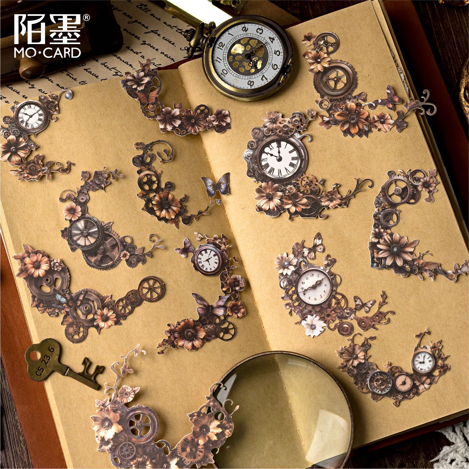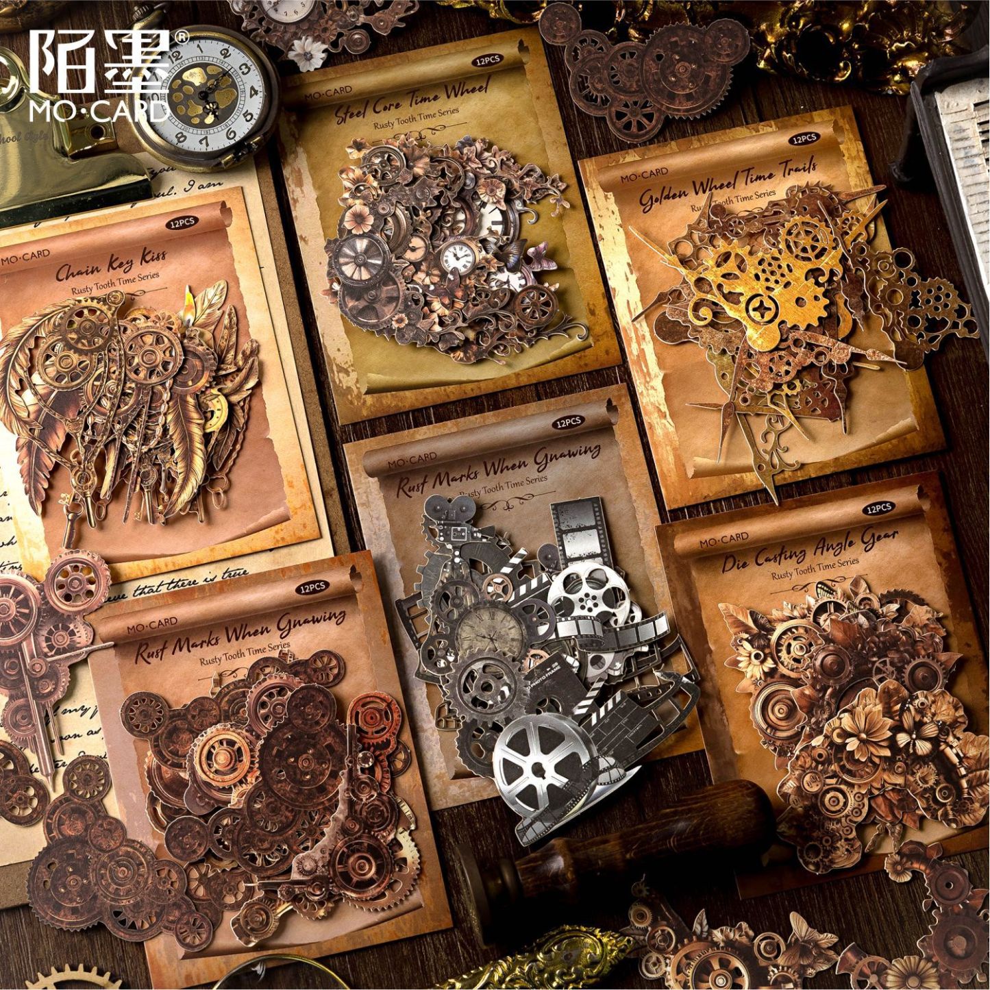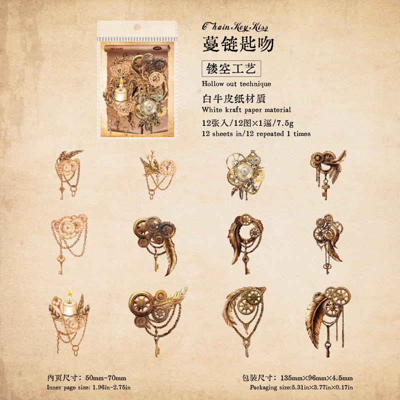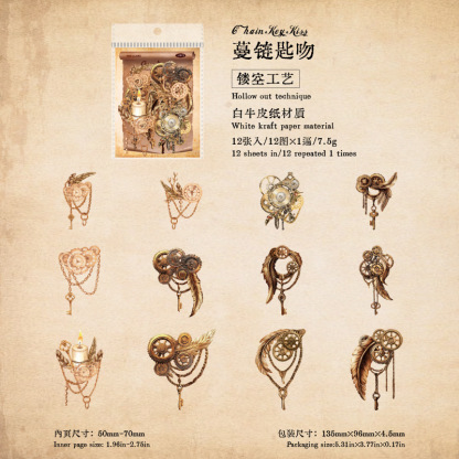 12Pcs/Pack Retro Steampunk Gear Corner Card Sticker