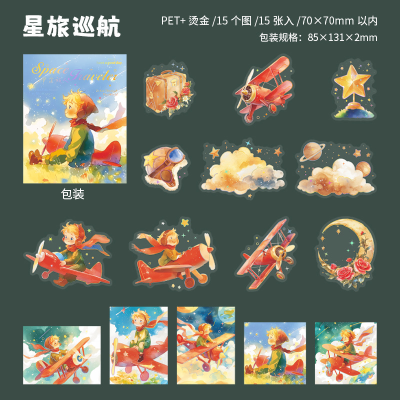 15Pcs/Pack The Little Prince Universe Planet PET Stickers