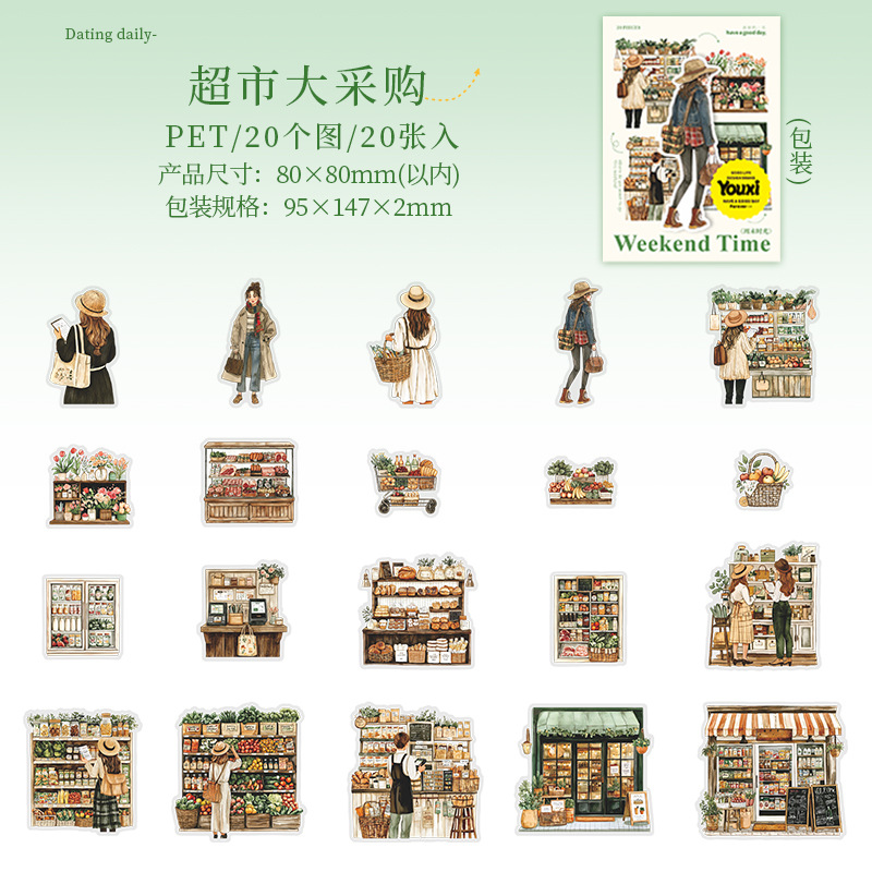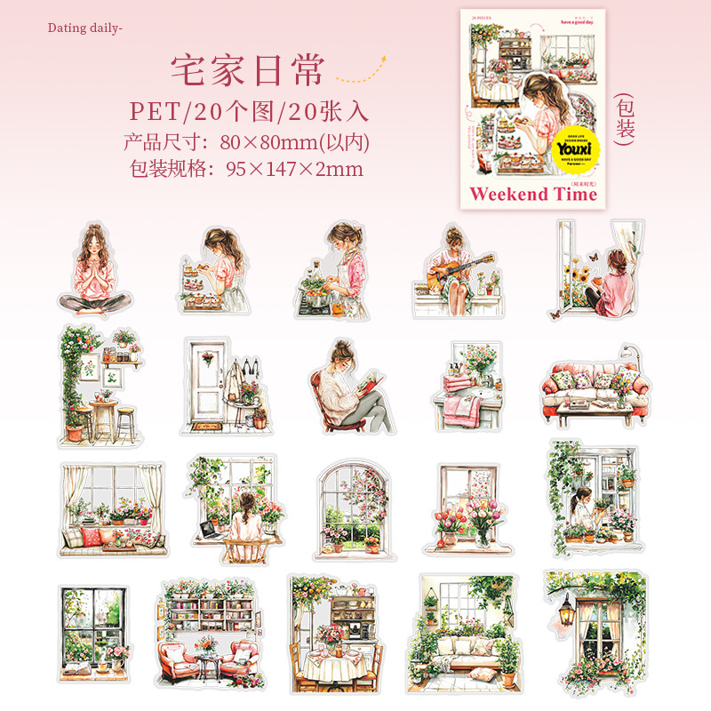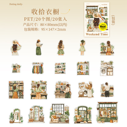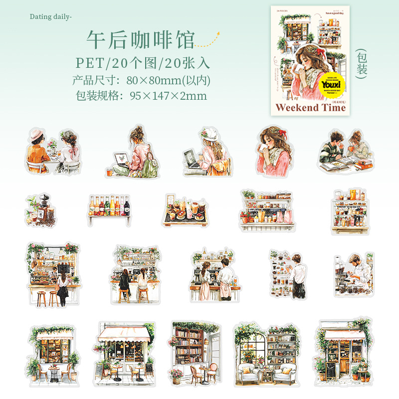 20Pcs/Pack Coffee Leisure Weekend Girl Theme PET Stickers